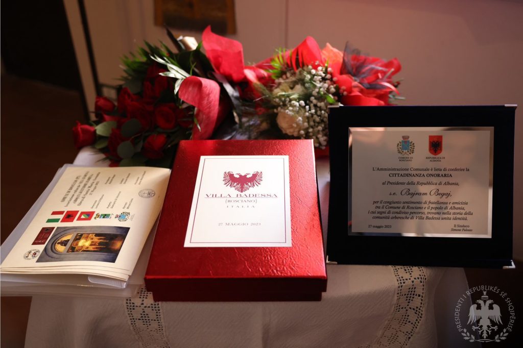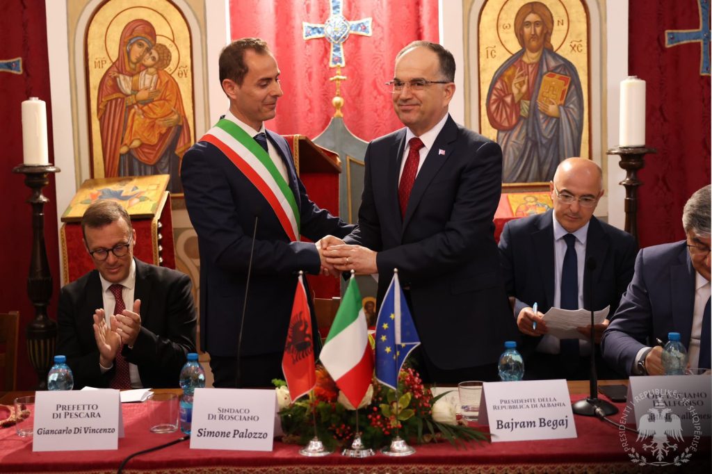 Në kuadër të vizitës zyrtare në Itali, Presidenti Bajram Begaj zhvilloi një vizitë edhe në komunën e Roshanos, ku u takua me autoritetet vendore të komunës si dhe rajonit të Abrucos, me përfaqësues të komunitetit arbëresh të Roshanos, por edhe me diasporën e re shqiptare të vendosur aty në tre dekadat e fundit. Në këtë takim, Presidenti Begaj u nderua me titullin “Qytetar Nderi” nga ana e Kryetarit të Bashkisë së Roshanos, Dr. Simone Palozo.