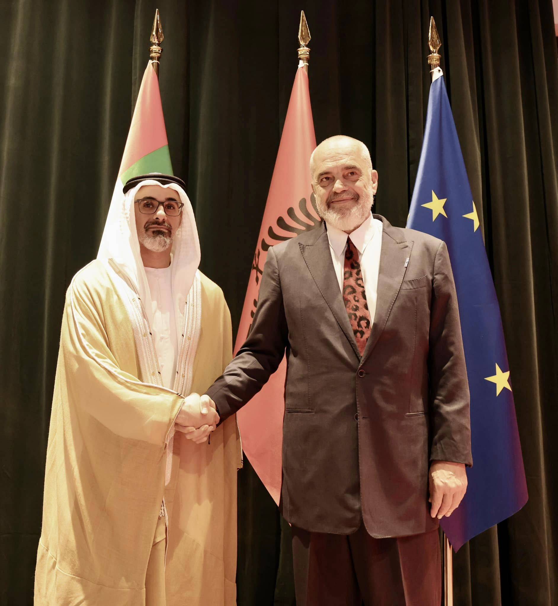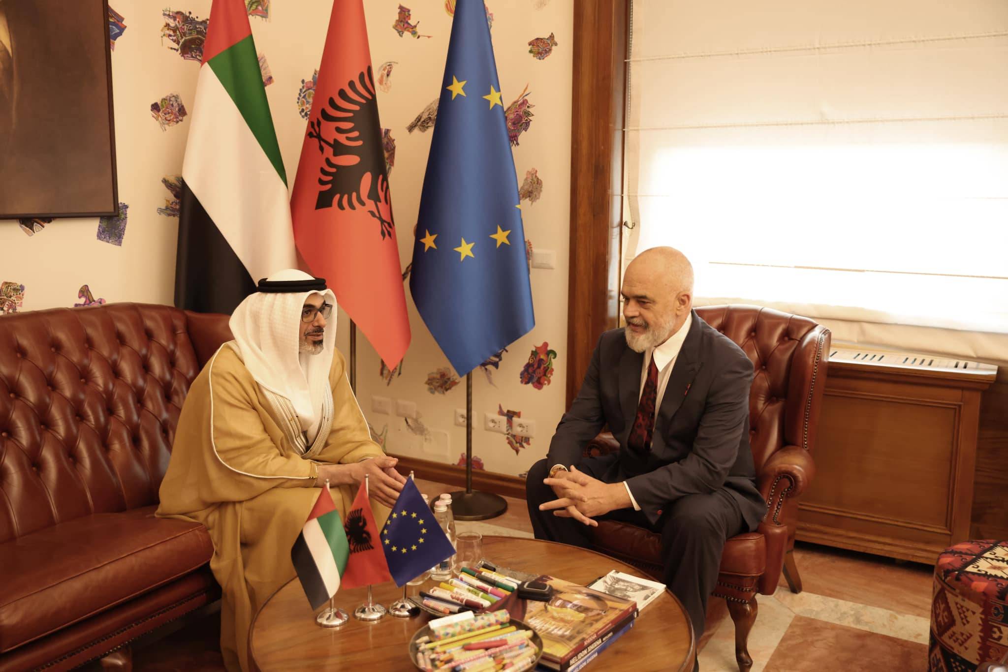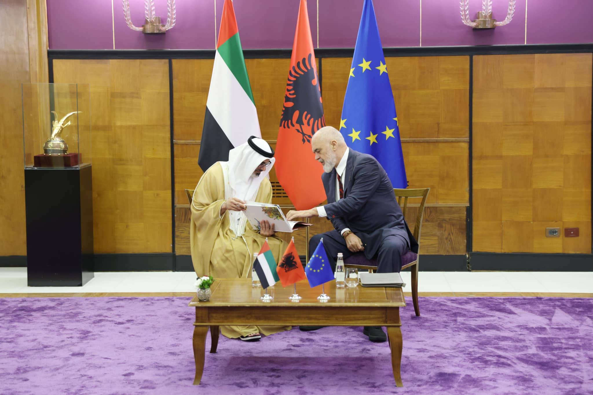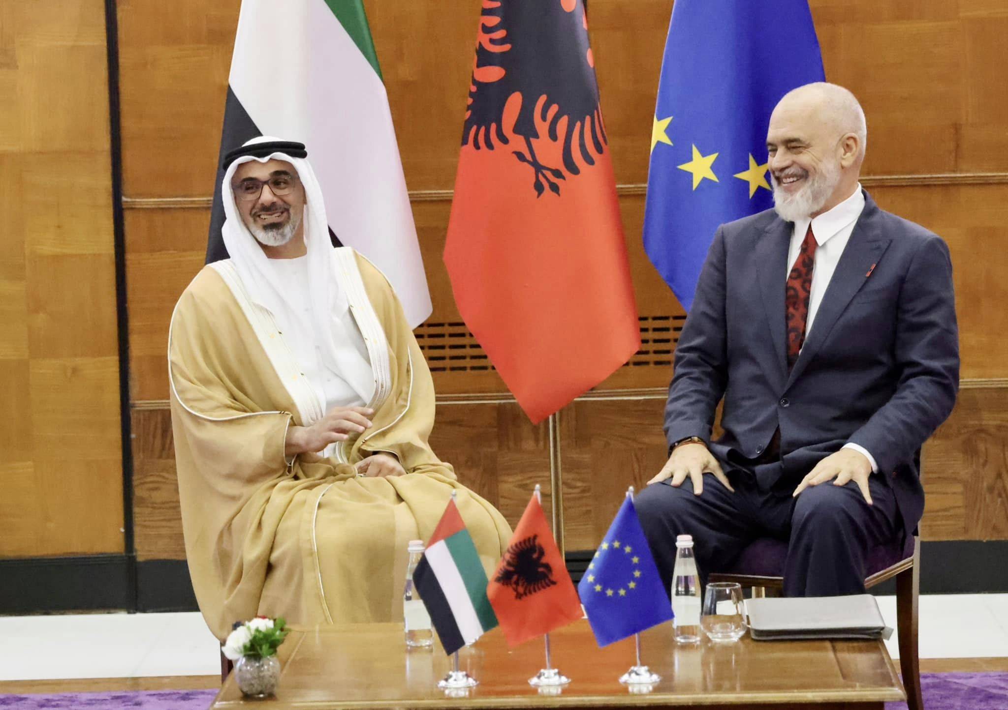 Këtë mbrëmje, kryeministri Edi Rama ka pritur në një takim me Princin e Kurorës së Emirateve të Bashkuara, Sheikh Khaled bin Mohamed Al Nahyan, me të cilin thotë se folën për ecurinë pozitive të projekteve të përbashkëta. ”Kryeministria-Takim me Princin e Kurorës së Emirateve të Bashkuara, Sheikh Khaled bin Mohamed Al Nahyan, me të cilin folëm për ecurinë pozitive të projekteve të përbashkëta”,-shkruan Rama.