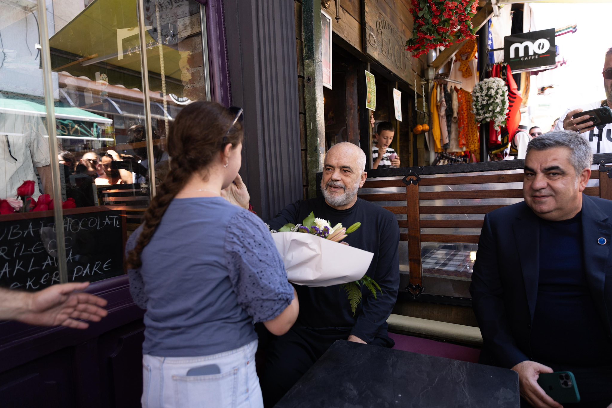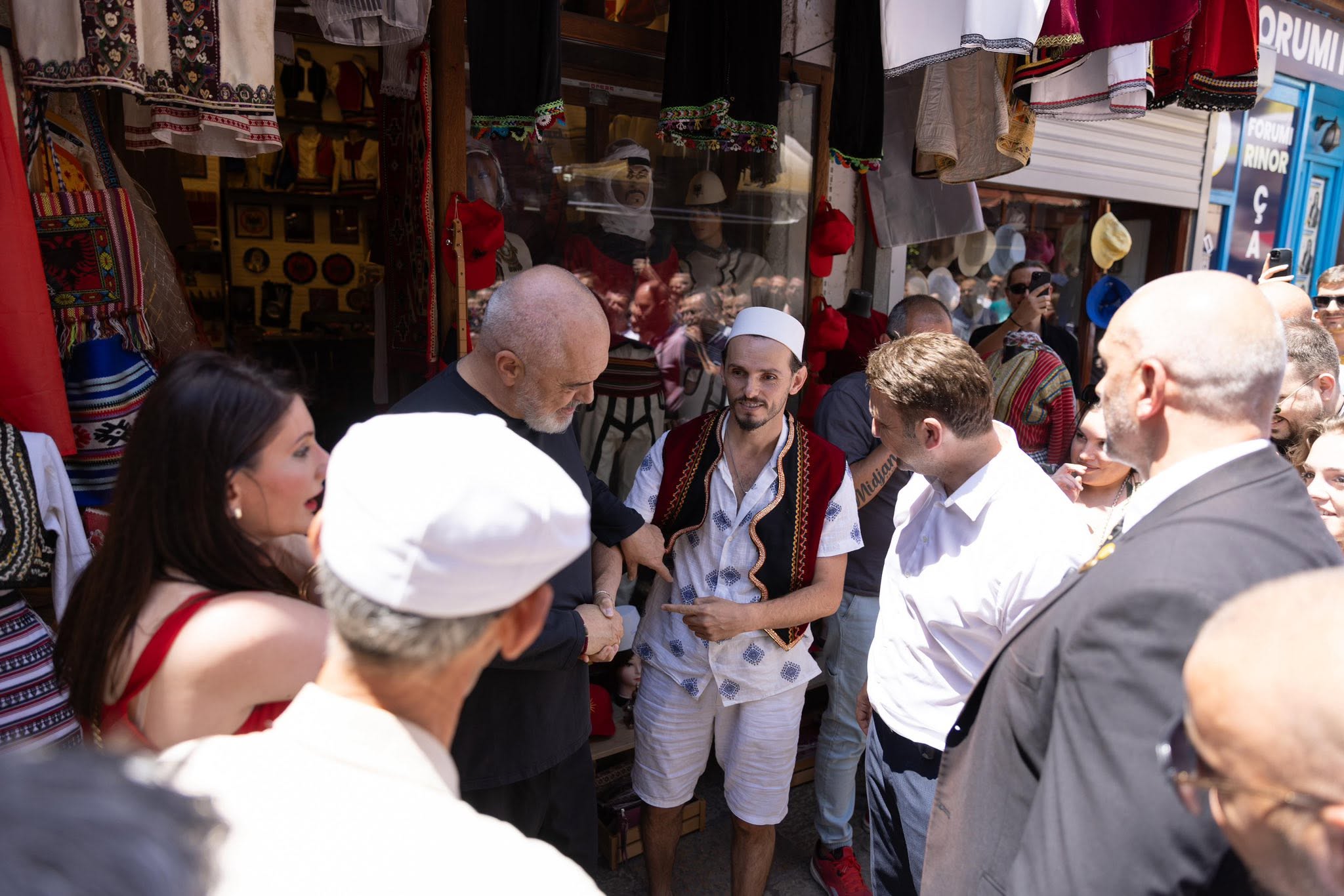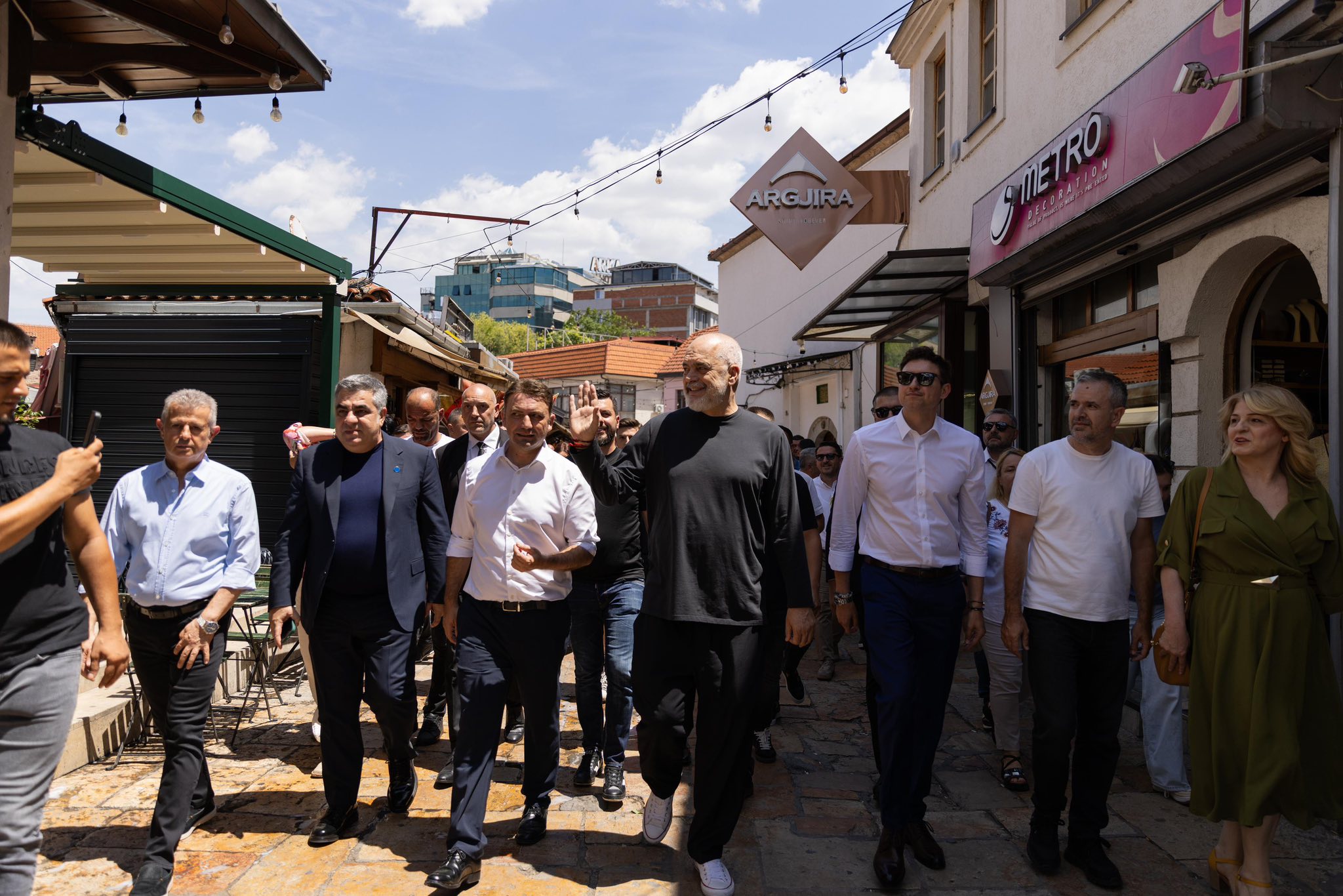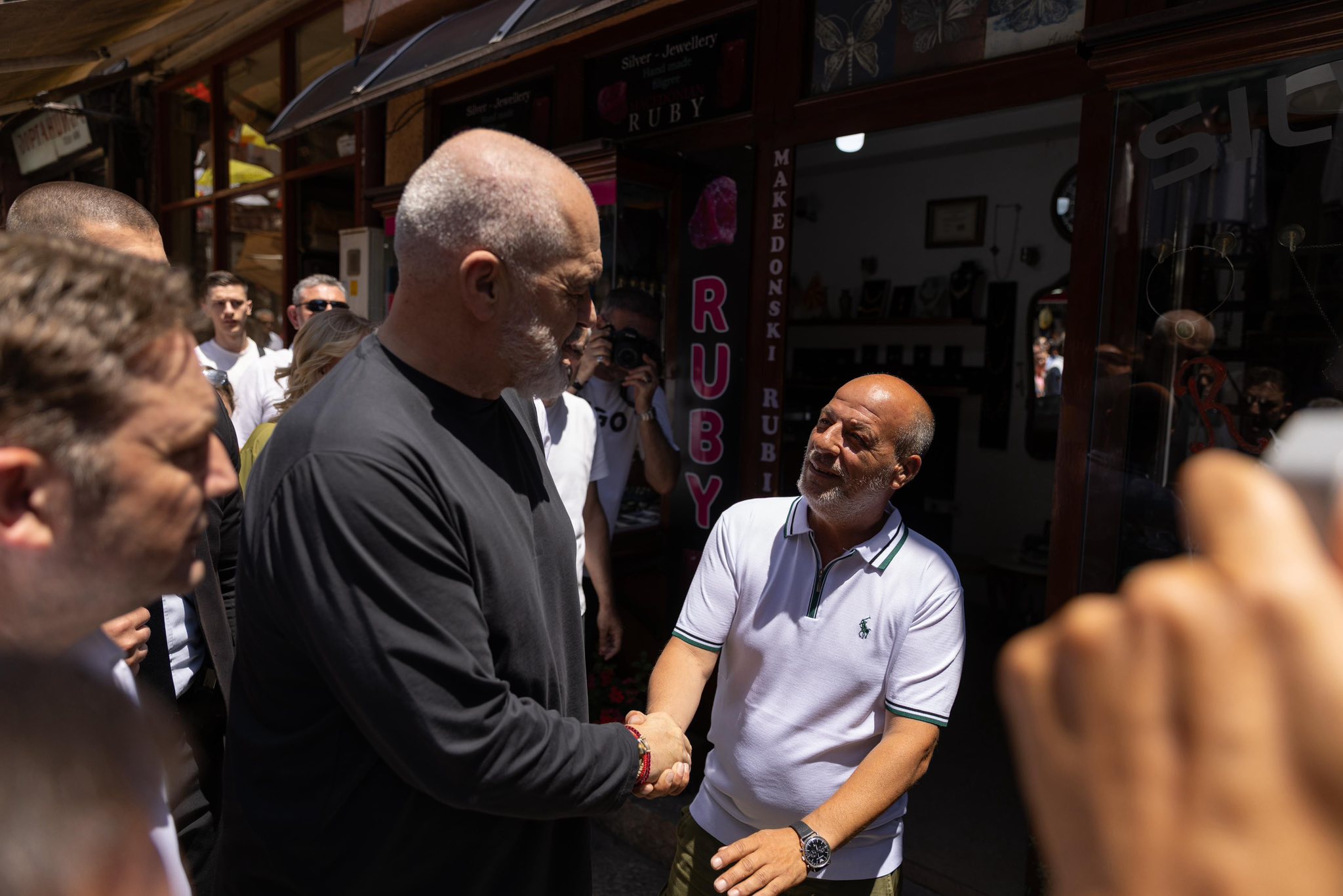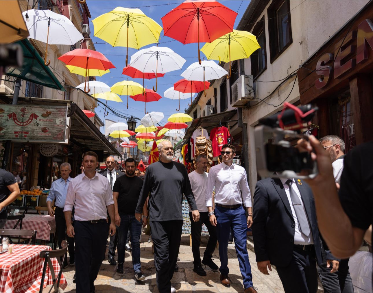 Kryeministri Edi Rama gjatë qëndrimit në Shkup, këtë të martë u takua me shqiptarë të Maqedonisë së Veriut te Çarshia e Vjetër e Shkupit. Rama ka postuar foto nga takimet e zhvilluara te Çarshia e Vjetër e Shkupit. Kreu i qeverisë mori pjesë sot në Takimin e Liderëve të Ballkanit Perëndimor dhe përfaqësuesve të lartë të Bashkimit Europian kushtuar Planit të Rritjes për rajonin, që u zhvillua në Shkup, Maqedoni e Veriut, me një agjendë diskutimesh mbi bashkëpunimin ekonomik, reformat dhe integrimin drejt tregut të përbashkët rajonal.