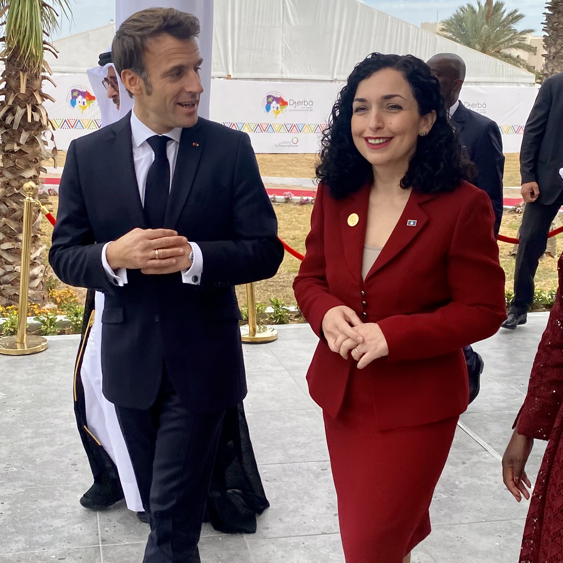“Bashkëbisedime të shumta me liderë botërorë gjatë ditës së parë të samitit të krerëve të shteteve anëtare të Frankofonisë, në Gjerba të Tunizisë”- shkruan në postimin e saj Vjosa Osmani, presidentja simpatike e Kosovës.