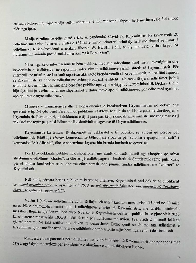 Dy grupet në PD janë bashkuar, dhe kërkojnë ngritjen e Komisionit Hetimor për udhëtimet me charter të kryeministrit Edi Rama.