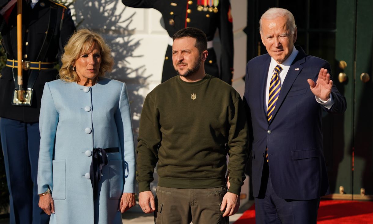 Joe Biden dhe gruaja e tij Jill, pritën presidentin e Ukrainës, Volodymyr Zelensky në lëndinën jugore të Shtëpisë së Bardhë, para së cilës ishte vendosur tapeti i kuq i rasteve të veçanta.