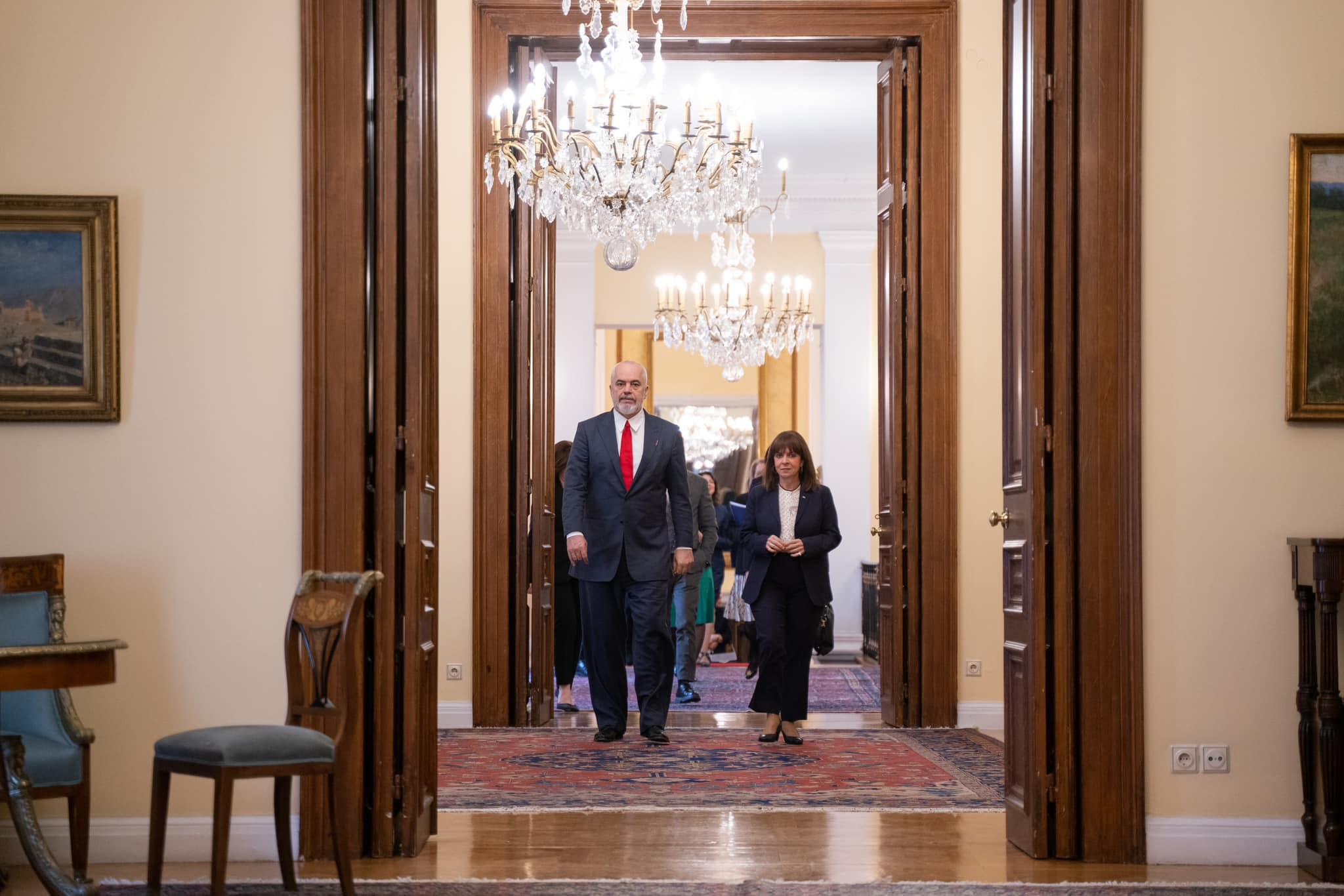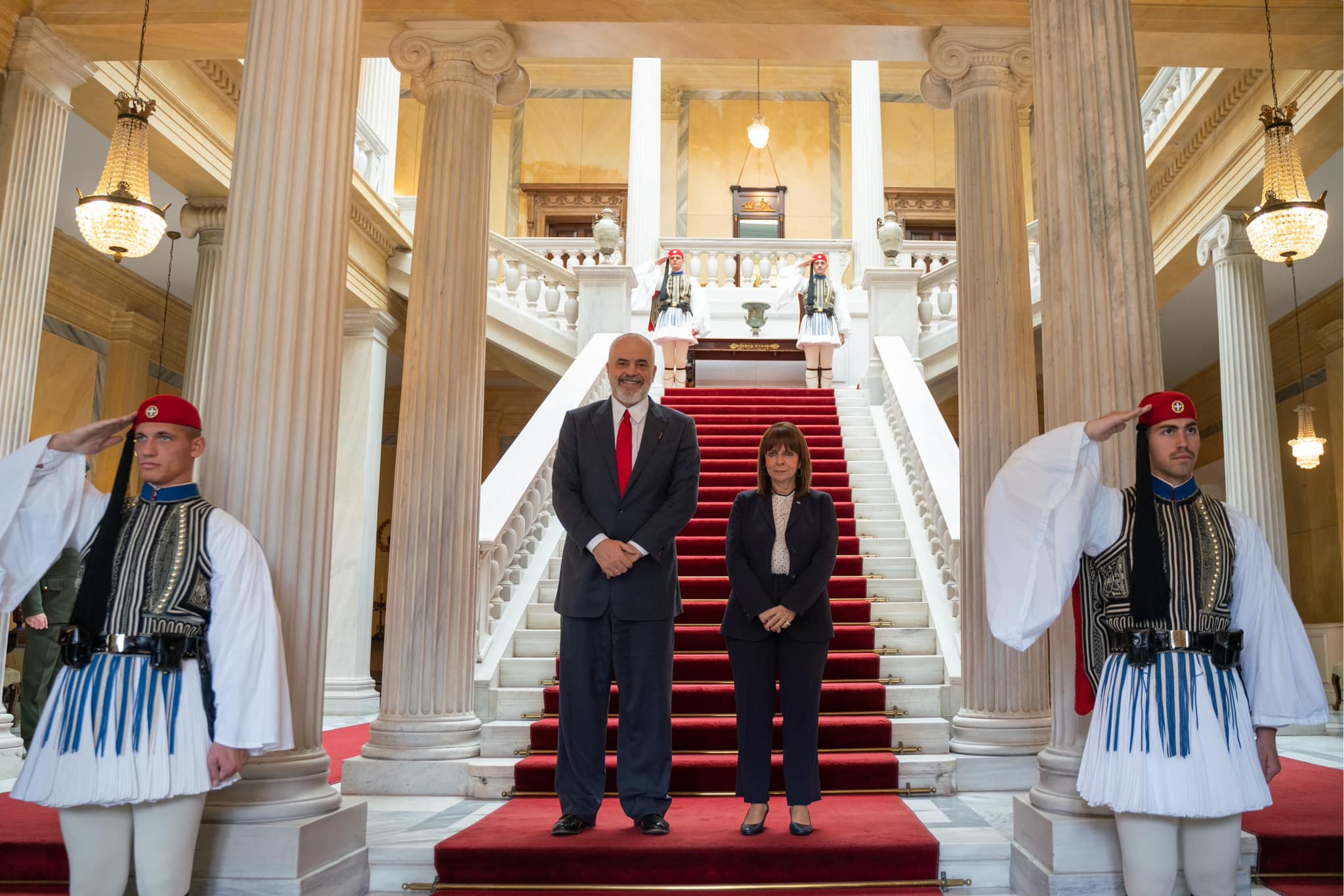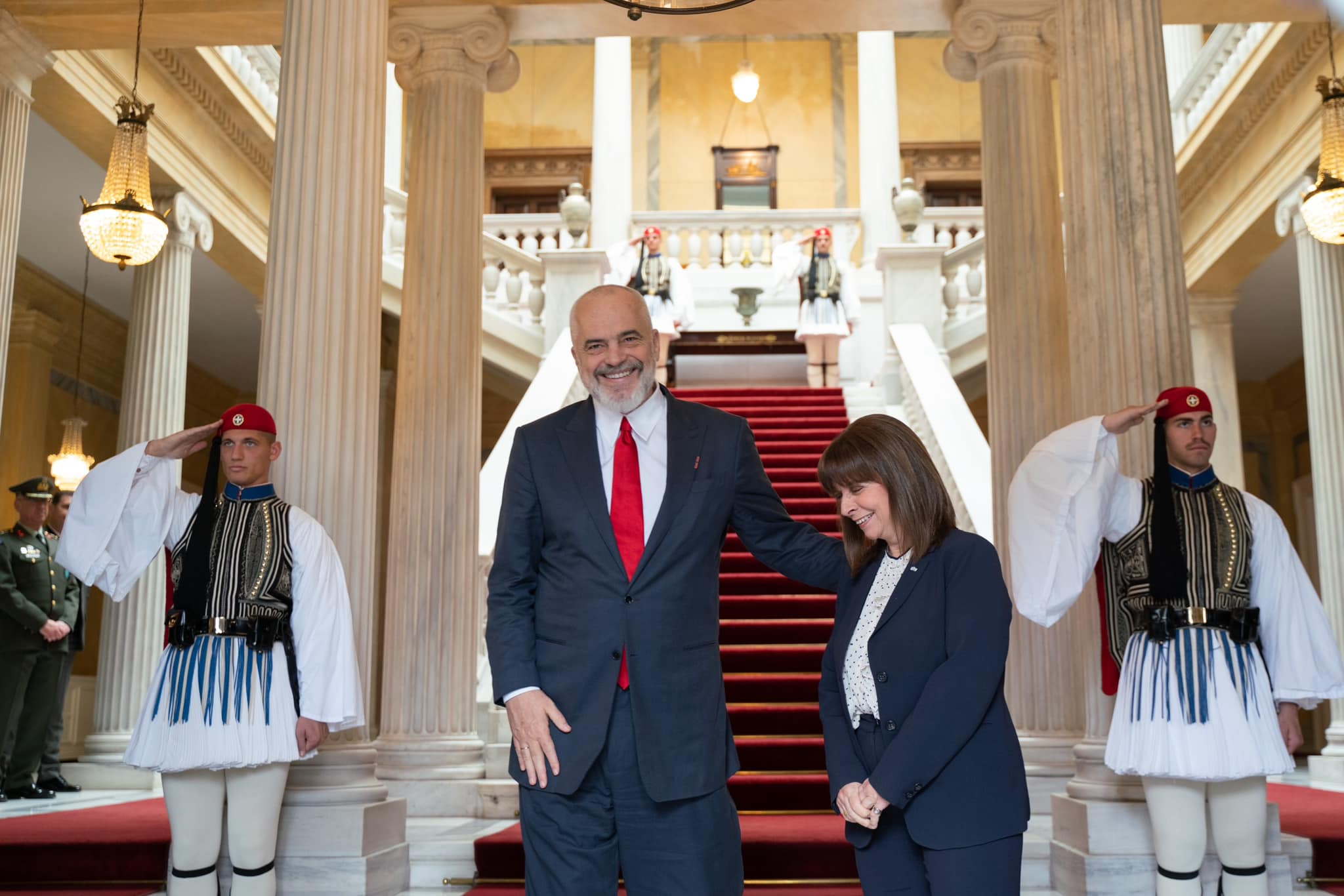 Pasi të hënën çeli ekspozitën me piktura, kryeministri Edi Rama është pritur nga presidentja e Greqisë, Katerina Sakellaropoulou, në ditën e dytë të vizitës në Athinë.