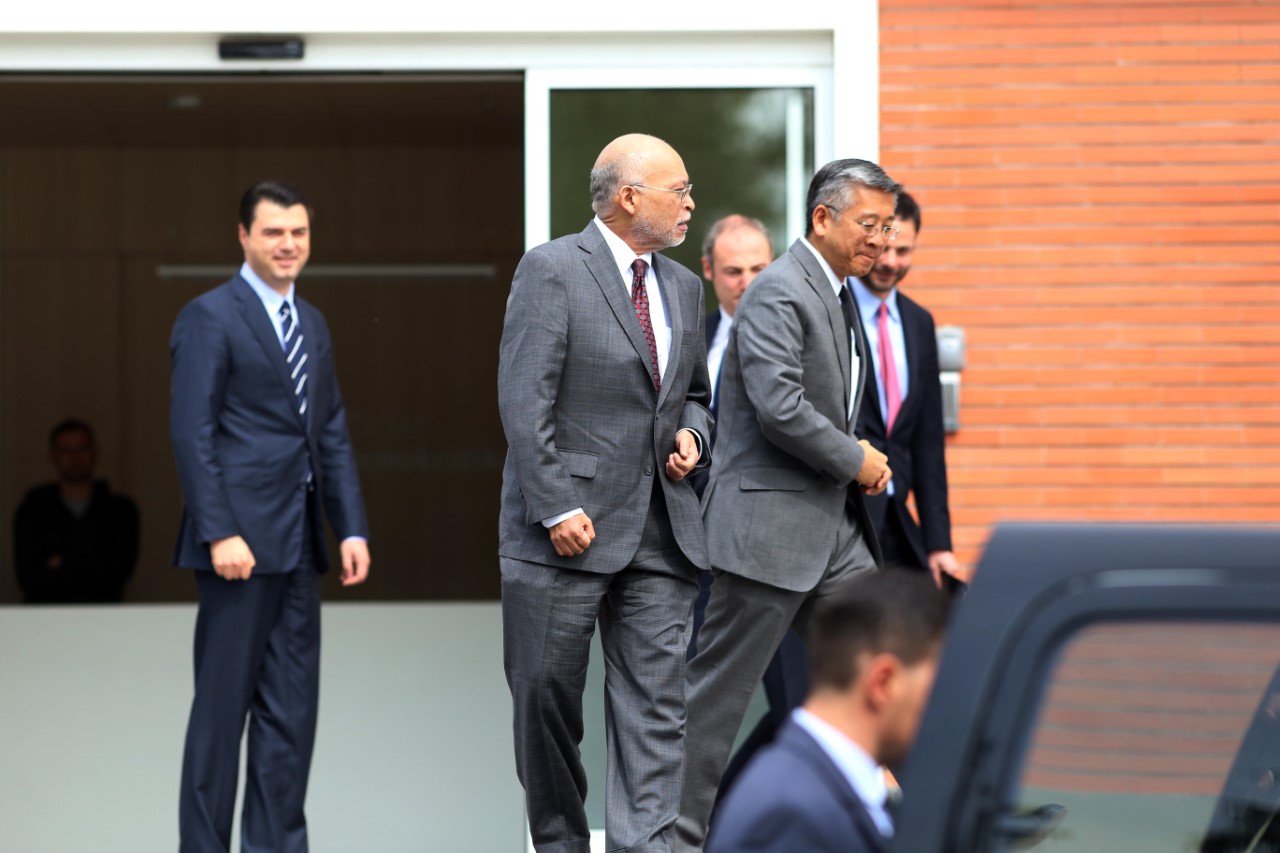 Takimi ka nisur para orës 10:00 të paradites së sotme, dhe për më shumë se 1 orë ambasadori Lu i shoqëruar nga paraardhësi i tij në Ambasadën Amerikane në Tiranë Aleksandër Arvizu