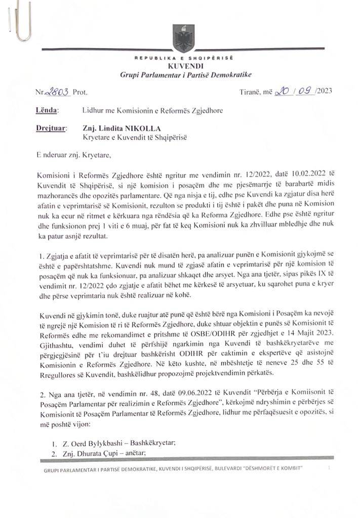 “Për një vit e gjashtë muaj, janë zhvilluar vetëm dy mbledhje, duke bllokuar çuarjen përpara të kësaj reforme të rëndësishme për vendin”, thuhet në kërkesë.