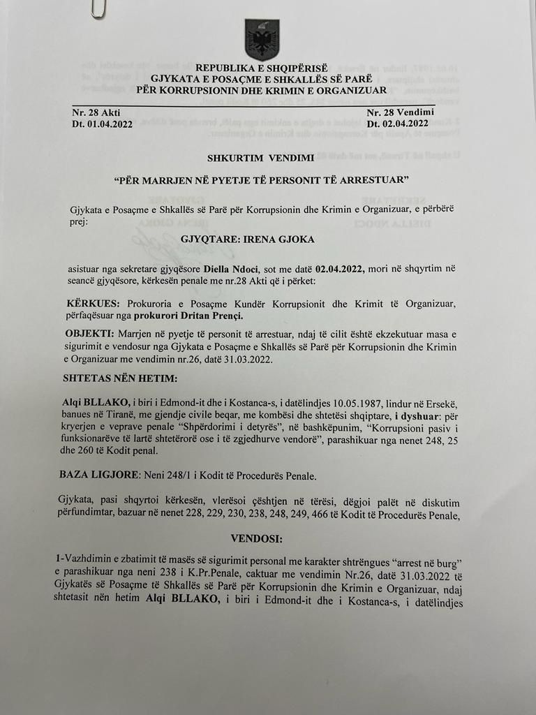 Lihet në burg ish-deputeti i PS, Alqi Bllako. GJKKO ka vendosur vijimin e zbatimit të masës së sigurimit personal “arrest në burg”.