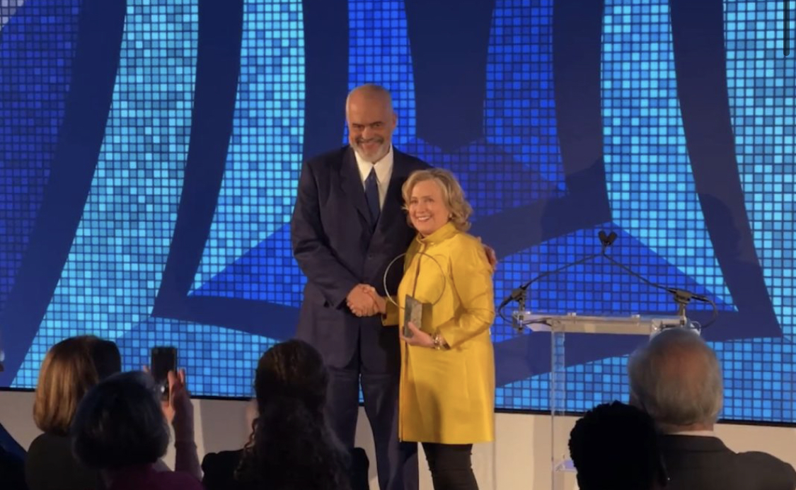 Hillary Clinton i jep Ramës çmimin e rëndësishëm, flet me superlativa: Karrierën e Edi Ramës e kam ndjekur me interes të madh, është Udhëheqës