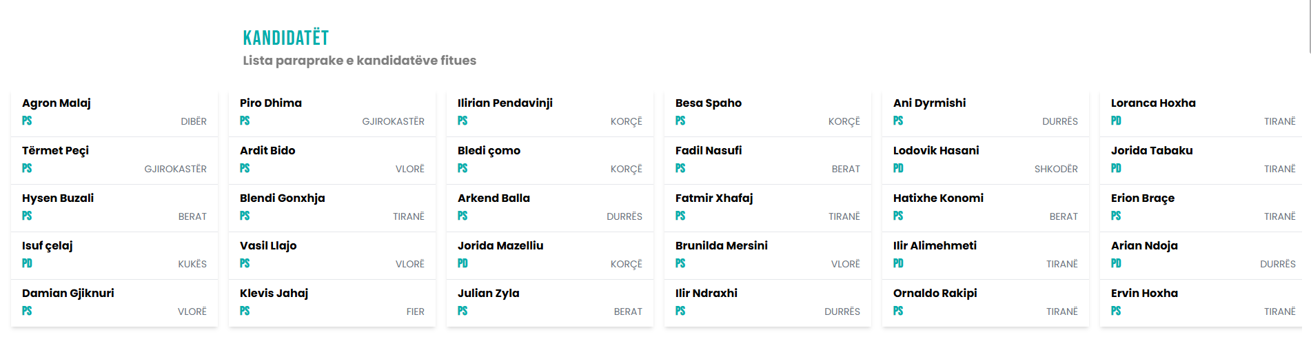 Ja lista e kandidatëve fitues nga lista e hapur për PS-në dhe PD-në