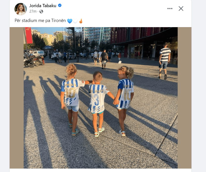 Ndeshja e sotme Tirana-Beshiktash ka edhe një tifoze deputete me dy fëmijët e saj. Jorida Tabaku shkruan në postimin e saj: “Për stadium me pa Tironën”