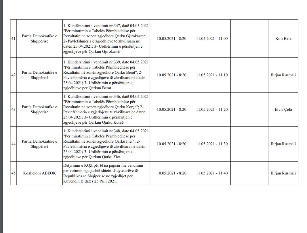 – Relator i kërkesave nr. 42, nr. 45 dhe nr. 44 është z. Ilirjan Rusmali.
