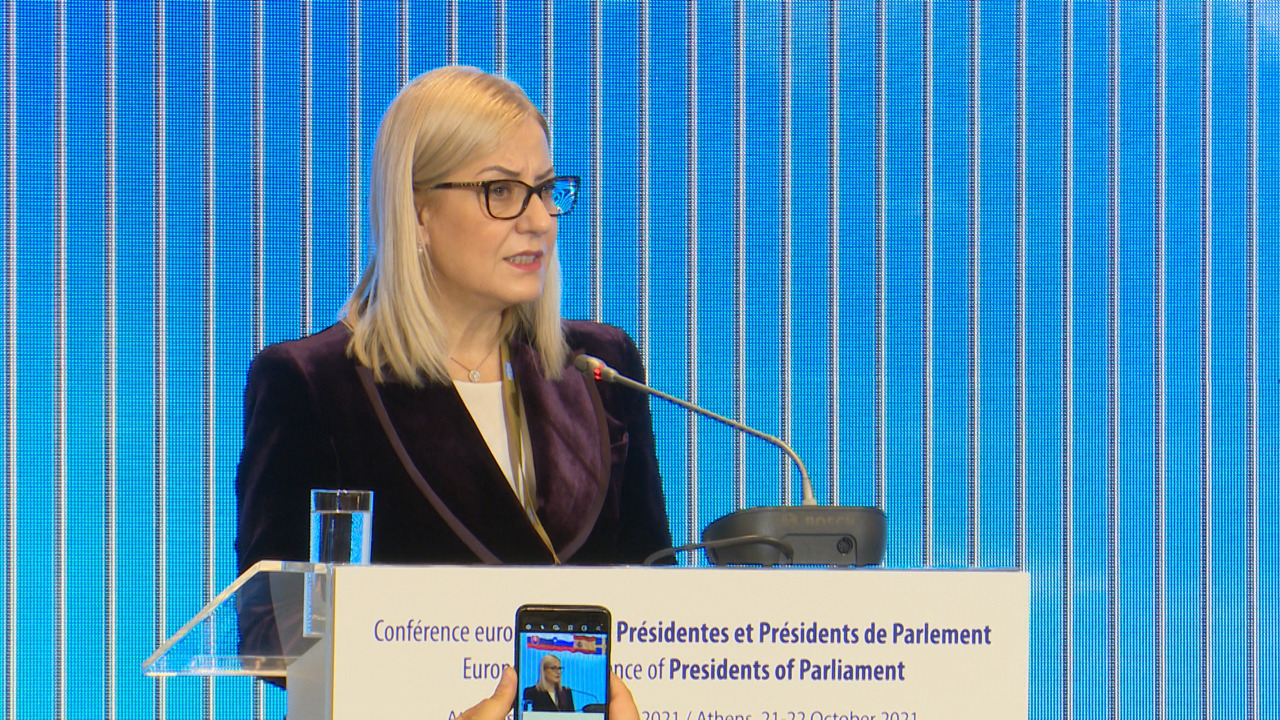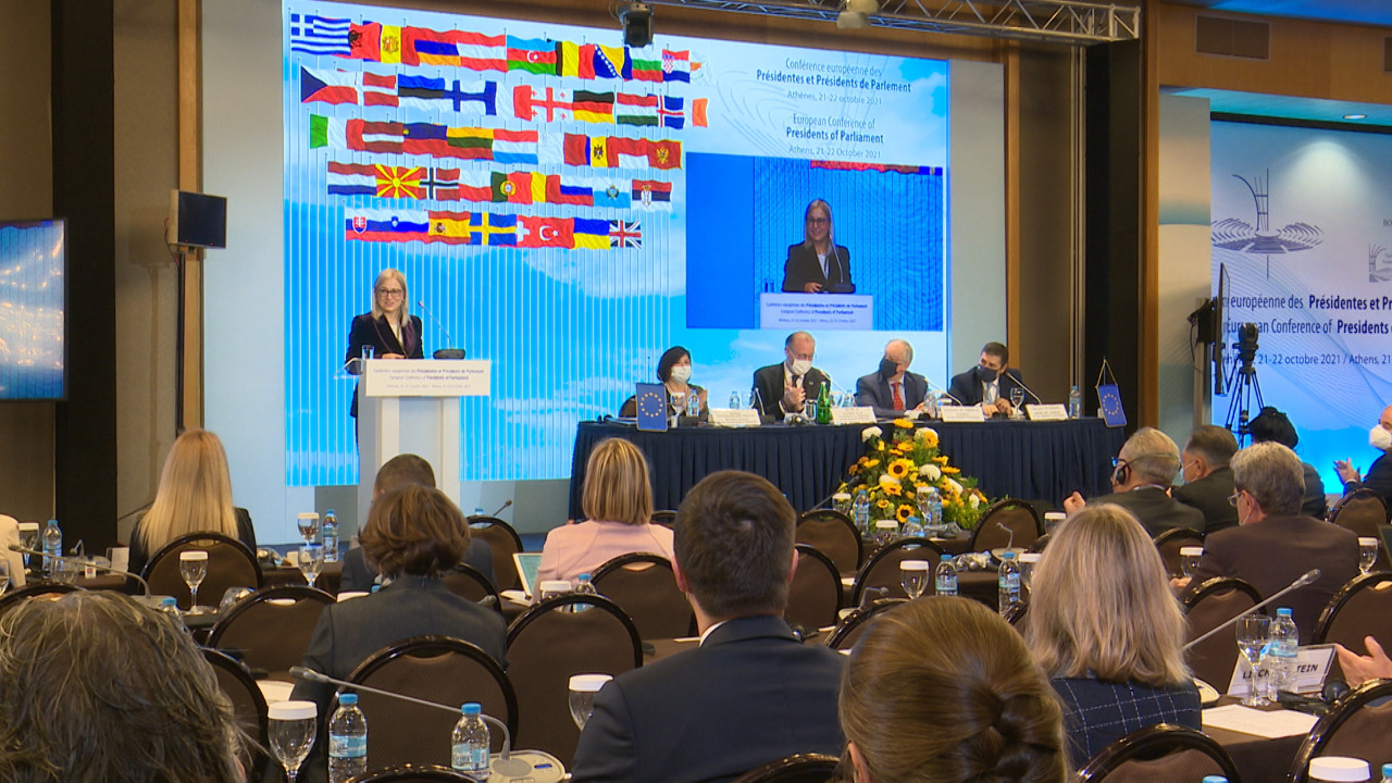 Sot, kryeparlamentarja Lindita Nikolla mori fjalën në Konferencën e Kryetarëve të Parlamenteve të vendeve anëtare të Këshillit të Evropës, në Athinë.