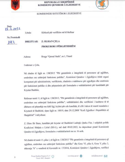 KQZ i kërkon Prokurorisë verifikim për kandidatin e “Shtëpia e Lirisë” në Lushnje