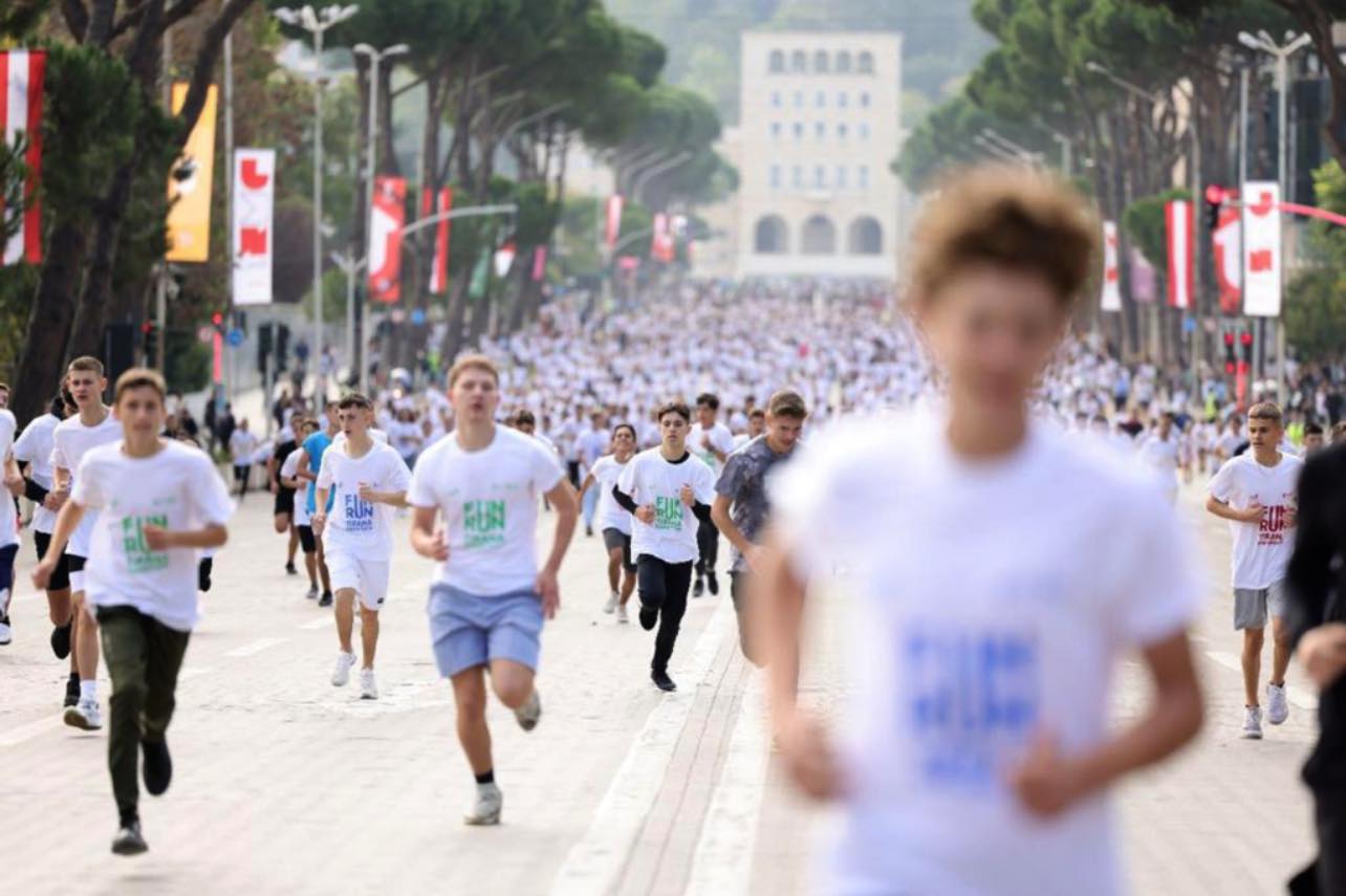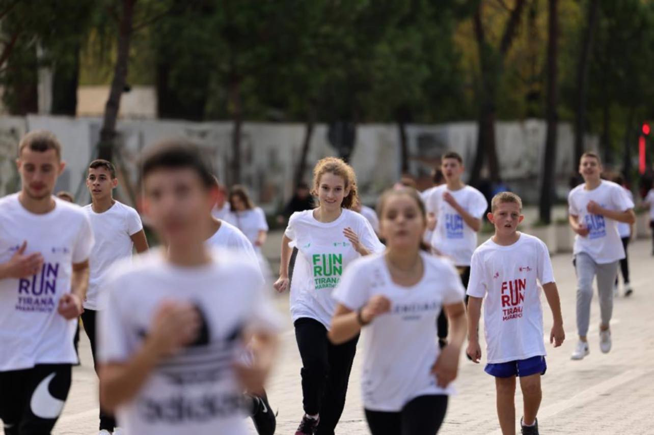 Qindra nxënës të shkollave 9-vjeçare të Tiranës në Bulevardin kryesor të qytetit, për t’i paraprirë sot me një “Fun Run” nisjes nesër të edicionit të gjashtë të Maratonës së Tiranës”- shkruan Edi Rama sot në postimin e kësaj të shtune.