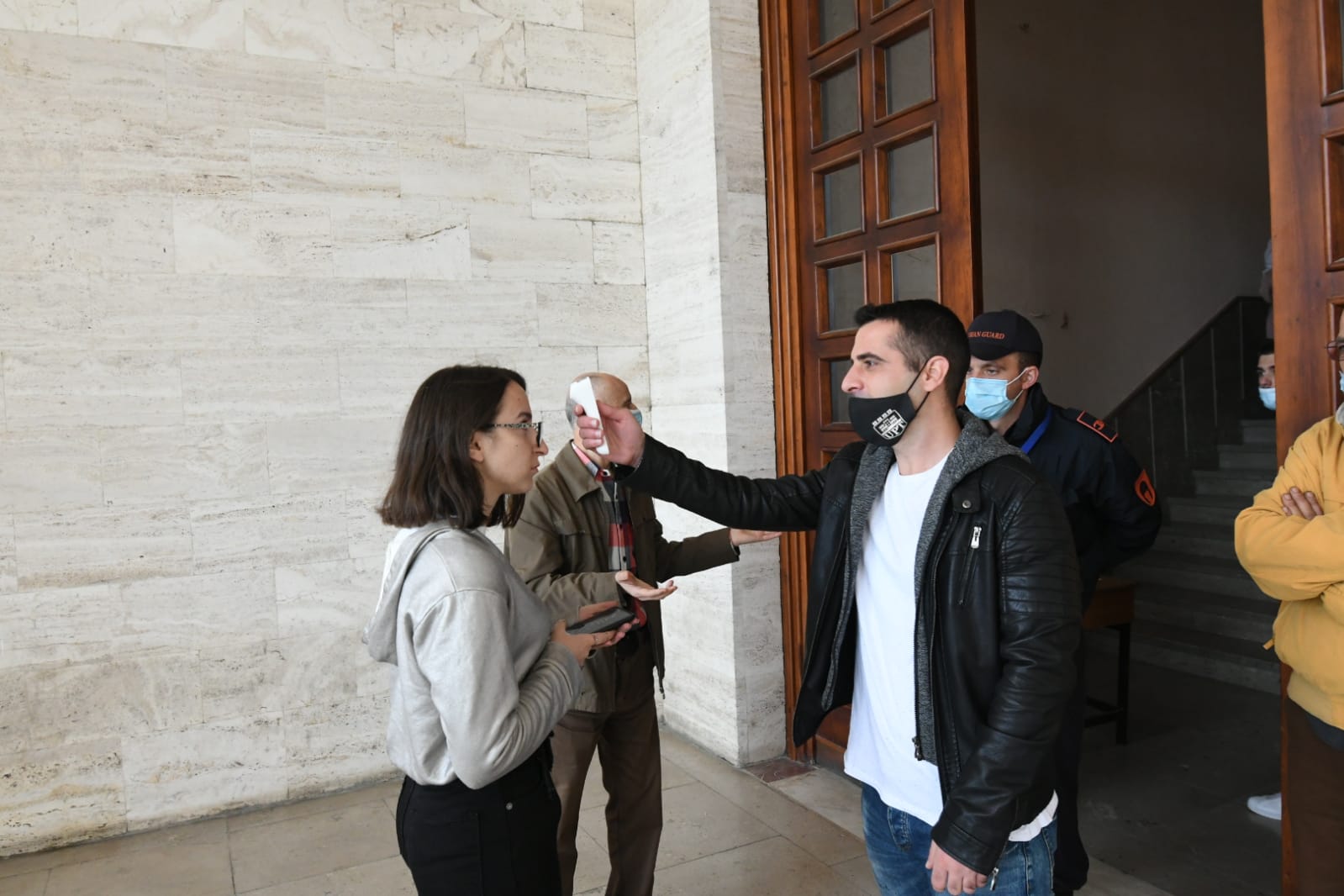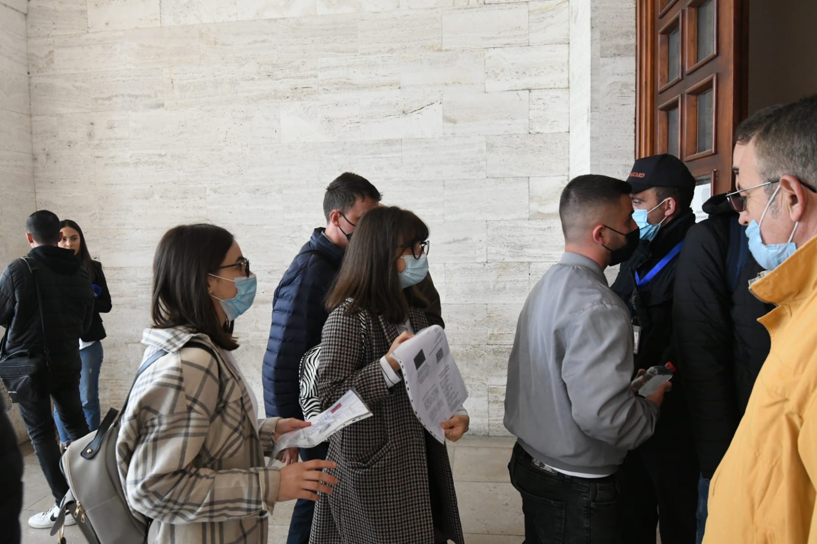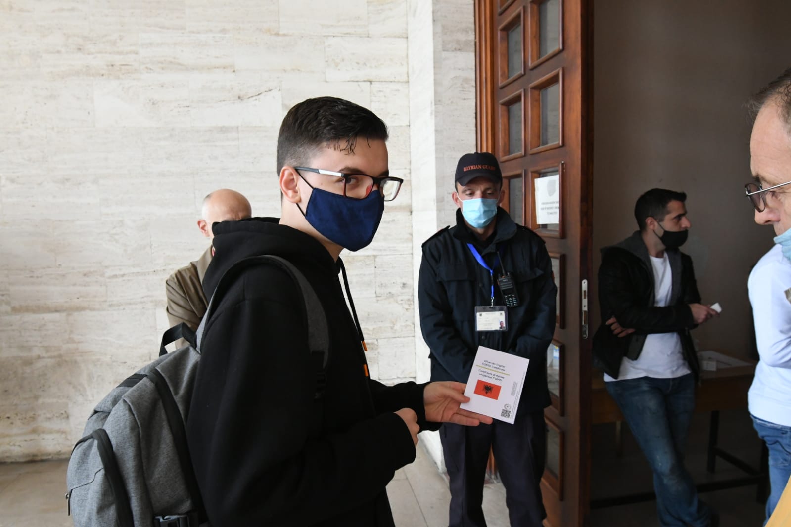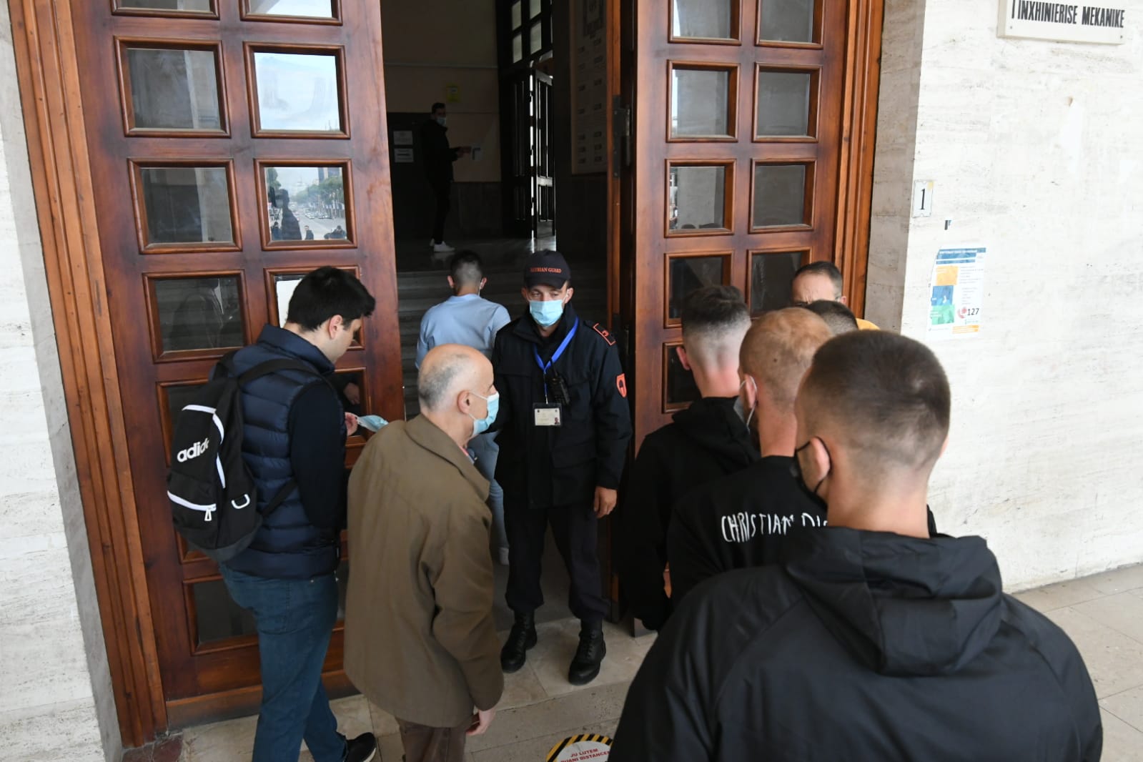 Policët janë vendosur edhe në hyrje të çdo fakulteti tjetër, për të kontrolluar studentët për vaksinën ose testin anti-Covid, ndërkohë që, siç shihet nga fotot e mëposhtme, këta të fundit janë të gjithë me maska, si dhe u matet temperatura para se t’u drejtohen auditorëve.