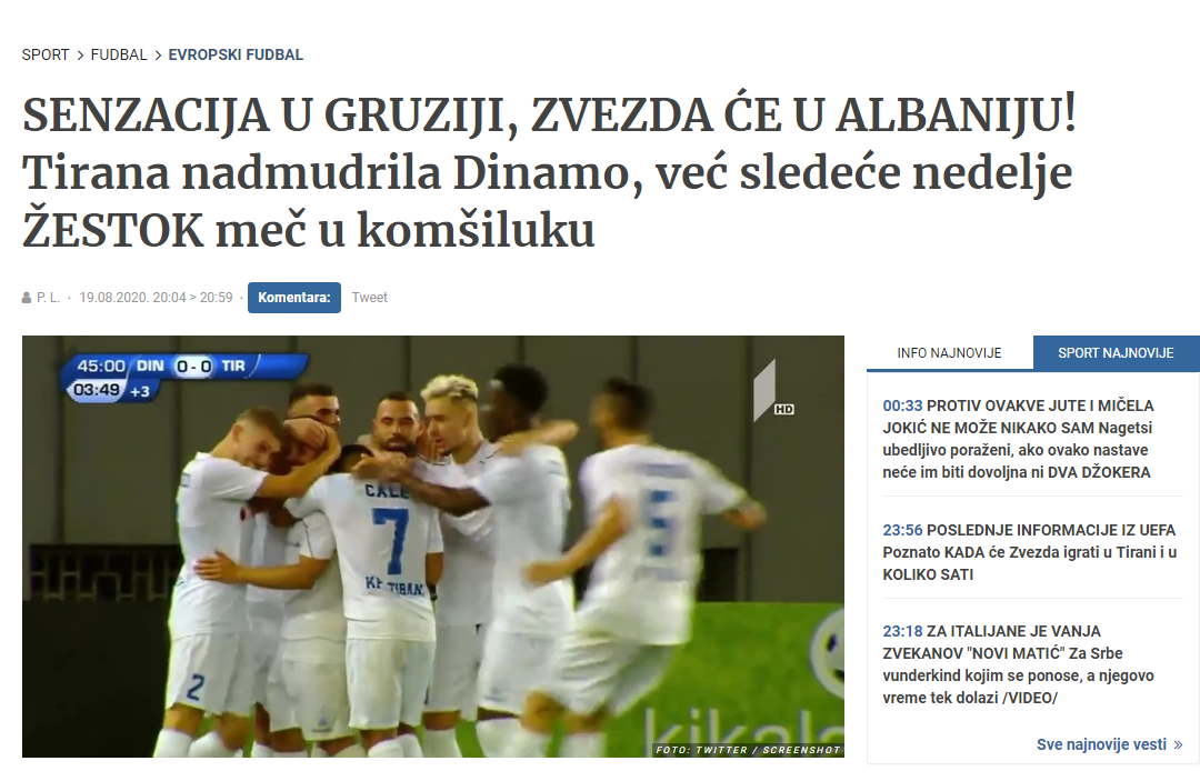 Mediat serbe për ndeshjen mes Tirana dhe Crvena Zvezda: Ndeshja e ferrit!
