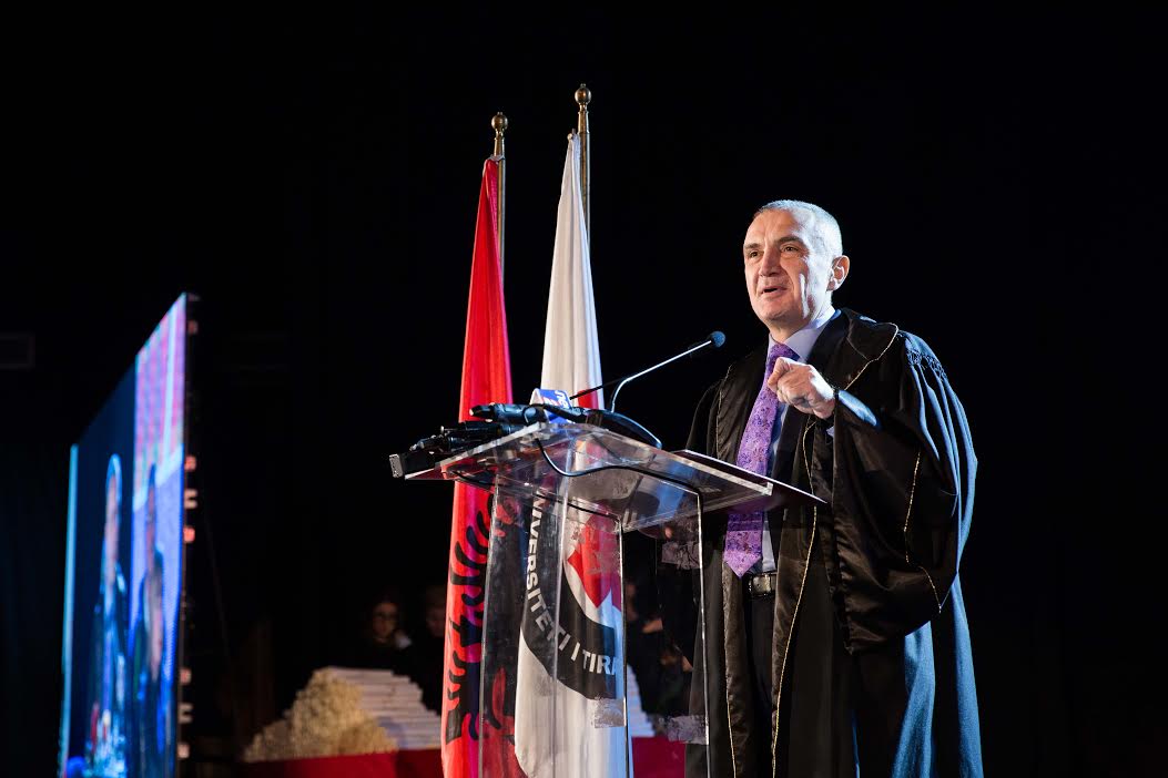 “Sot është mbyllur një nga kapitujt më të rëndësishëm të jetës tuaj dhe nesër fillon një tjetër po aq i rëndësishëm ku ju do të merrni përgjegjësi të reja. Ju uroj nga zemra të gjithëve shumë fat dhe suksese në karrierën tuaj profesionale, duke qenë i bindur se nëpërmjet angazhimit tuaj në të ardhmen, kontributi juaj do të jetë një vlerë e shtuar për ju, për fakultetin tuaj, dhe natyrisht për Shqipërinë dhe të ardhmen e saj”, – theksoi z. Meta, teksa iu drejtua prindërve të pranishëm në këtë ceremoni, duke thënë se kjo është dita për të qenë si asnjëherë tjetër krenar e të lumtur për sakrificat dhe investimin që kanë bërë për arsimimin dhe edukimin e fëmijëve të tyre.