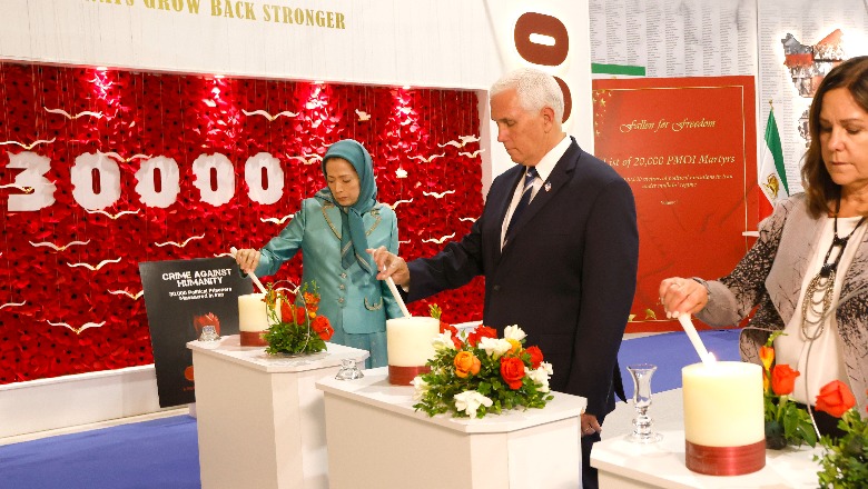 “Ju falënderoj për këtë mirëseardhje kaq të ngrohtë për mua dhe gruan time të jemi sot këtu në Ashraf 3 ku flaka e lirisë digjet në Shqipëri. Është privilegj të jemi këtu në shtëpinë e lirisë së Iranit. Ne ndajmë një çështje të përbashkët. Çlirimin e popullit të iranit dhe lindjen e një Irani demokrat të lire dhe me parimet e një demokracie të qëndrueshme.