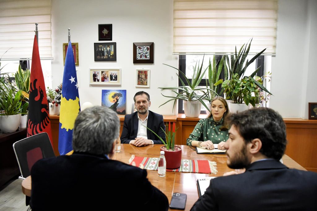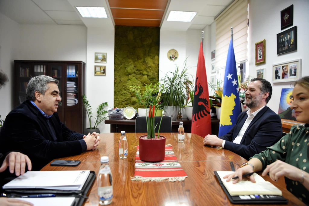Ministri i Ekonomisë, Kulturës dhe Inovacionit, Blendi Gonxhja u prit në një takim në Prishtinë nga ministri i Kulturës, Rinisë dhe Sporteve të Kosovës, Hajrulla Çeku.