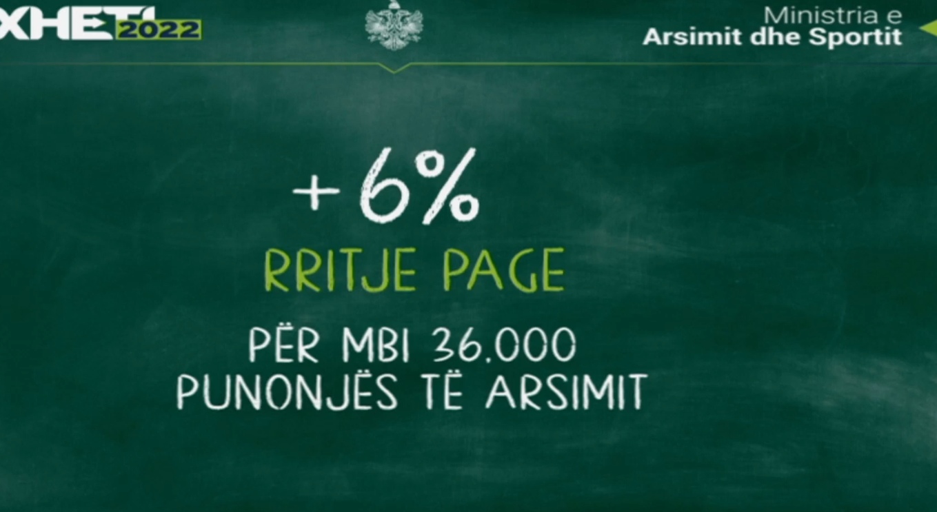 Për vitin 2022 për të gjithë punonjësit mësimor edukatorë dhe psiko-social në gjithë shkollat pagat do rriten me 6%.