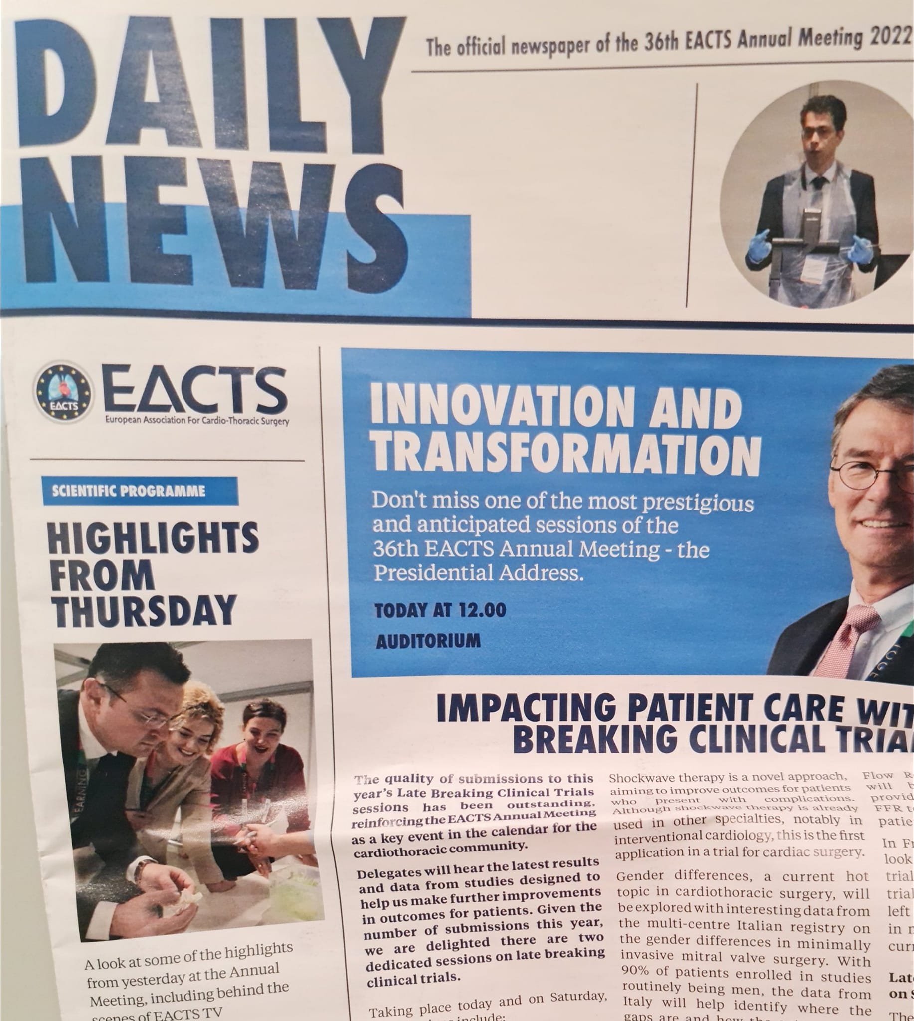 “Përmbyllet me sukses kongresi Europian i Kardiokirurgjise në Milano. Të shohesh veten në faqe të parë të gazetes zyrtare te EACTS (European association of Cardiothoracic Surgery), dhe te jesh mësues duke përgatitur breza te rinj është një nder i madh si përfaqesues i Shqipërisë. Takim me miq Kardiokirugë, lider në këtë specialitet, në vende te ndryshme të botës” shkruan mjeku i njohur shqiptar, Altin Veshti.