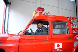 Ambasadori i Japonisë mori pjesë në ceremoninë e dorëzimit të mjeteve të reja zjarrfikëse të dhuruara nga qeveria japoneze. Ndodhej edhe kryetari i bashkisë së Tiranës, Erion Veliaj.