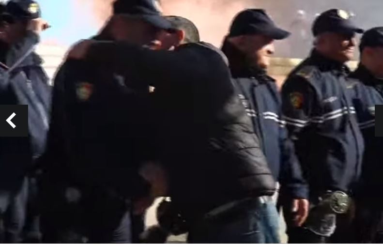 Momente pikante nga protesta. Qytetari përqafon dhe puth policin në kordonin para Kryeministrisë (FOTO)