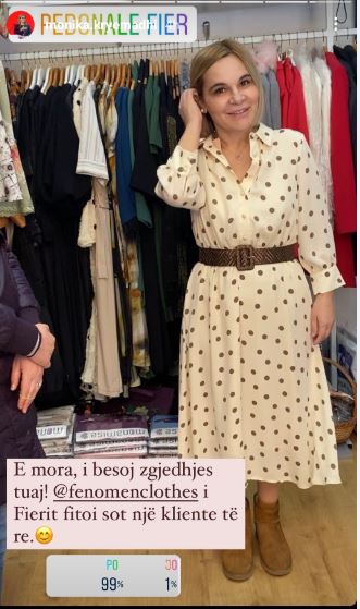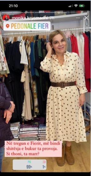 Me thjeshtësinë që e karakterizon, Kryemadhi ka shpërndarë në rrjetet sociale disa foto me fustanin që ka provuar, duke pyetur ndjekësit: “Si thoni, ta marr?”.