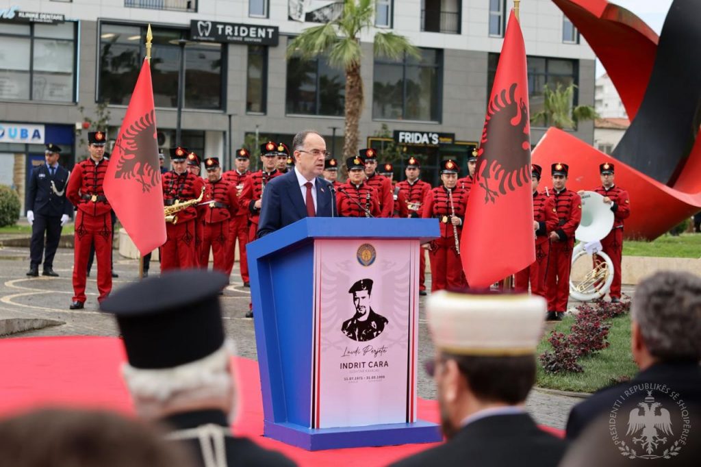 Presidenti Bajram Begaj përkujtoi sot në Kavajë “Dëshmorin e Kombit”, Indrit Cara, në 26-vjetorin e rënies në luftën e Kosovës, në një ceremoni solemne ku u inaugurua monumenti i tij. Kreu i Shtetit vendosi një kurorë me lule në shtatoren e “Ushtar Kavajës” në nderim të veprës sublime për kombin.