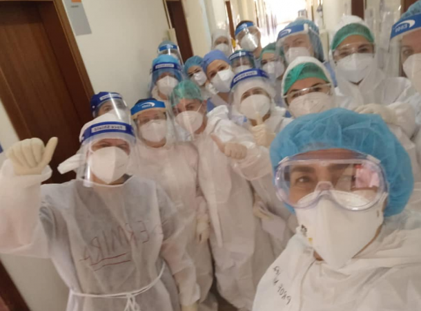 Najada Çomo, shefe e spitalit infektiv ka publikuar një foto nga spitali COVID-1 së bashku me stafin e mjekëve.