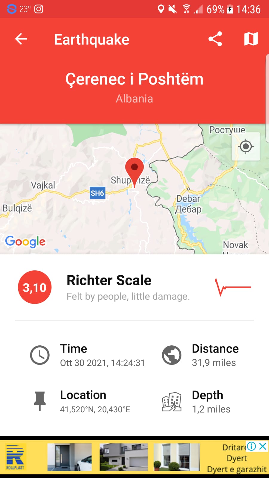 Dibra është tronditur sërish nga një tjetër tërmet. Lëkundjet kanë qenë në magnitudën 3.1 të shkallës rihter.