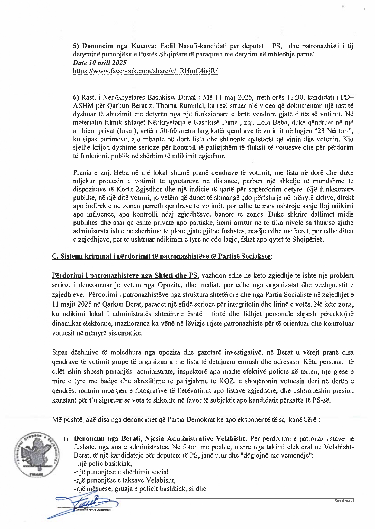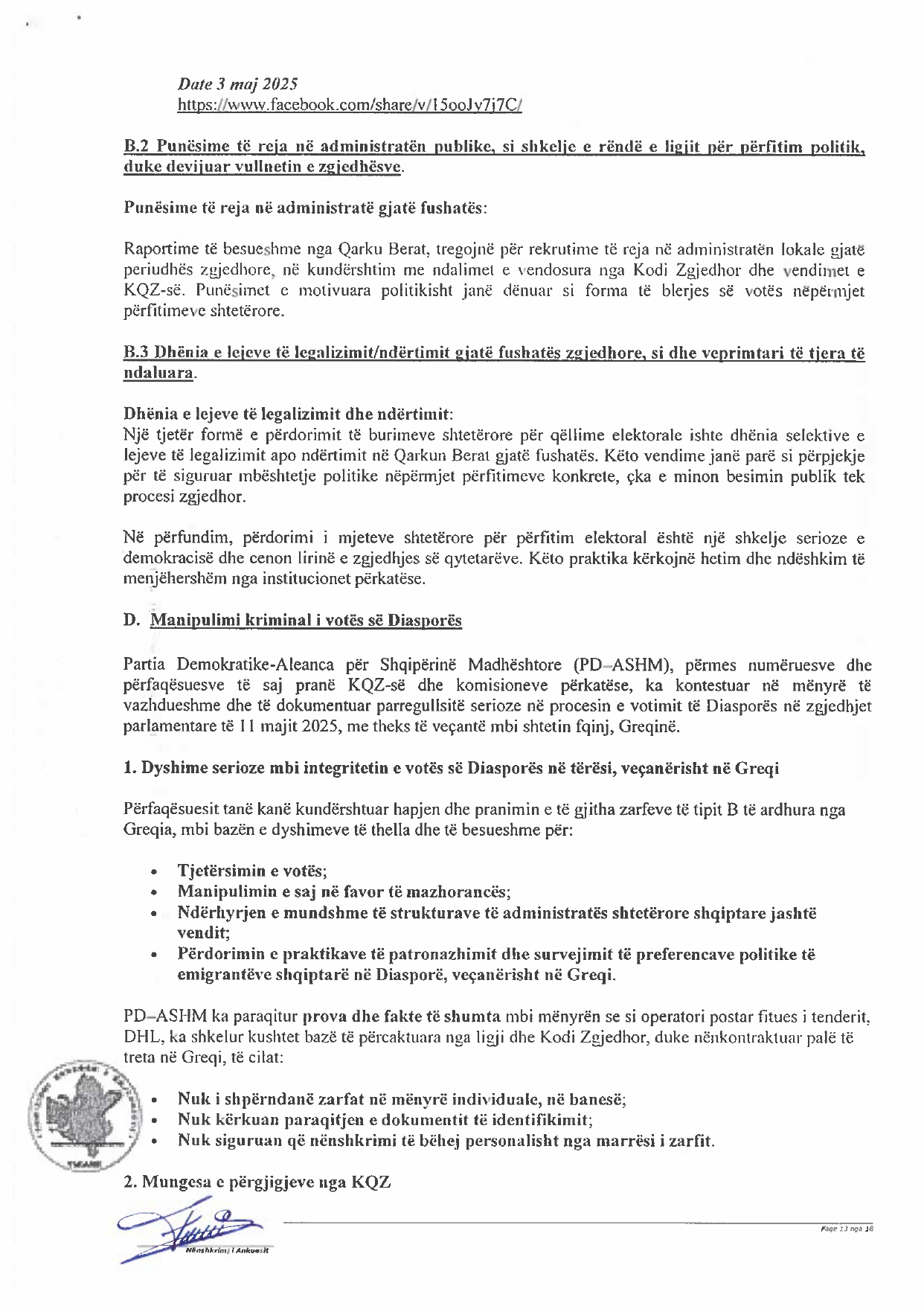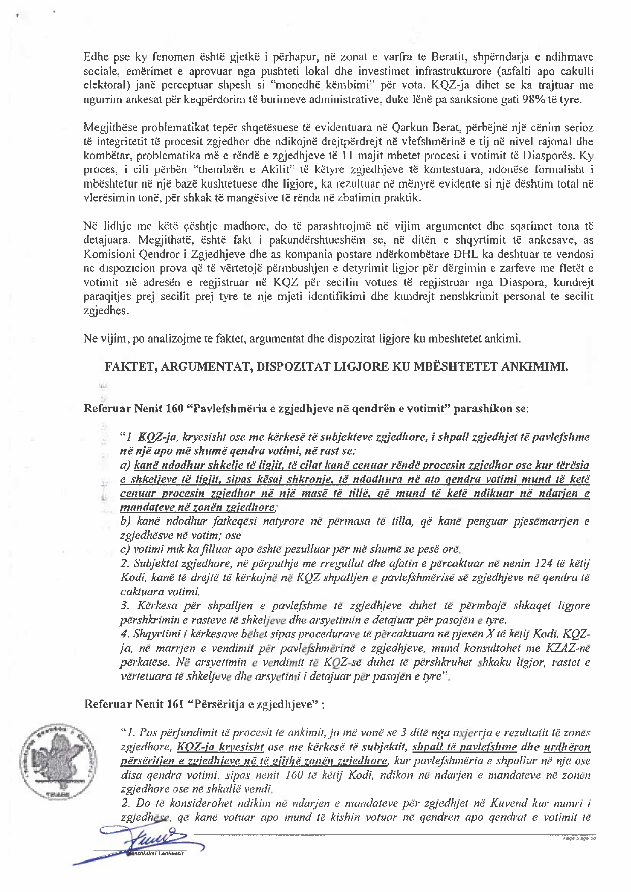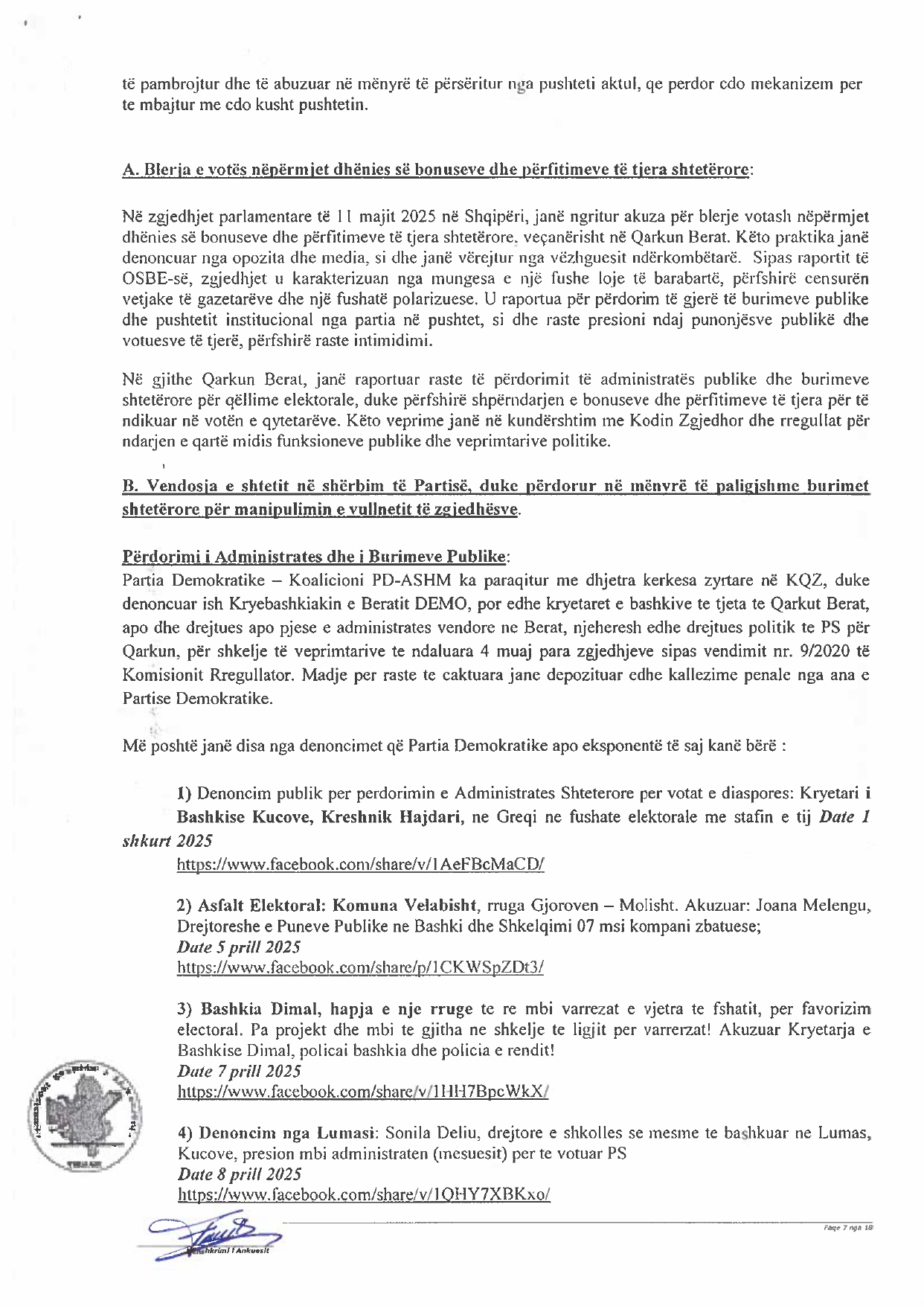 Selia blu pas betejës për të fituar mandatin e Ilir Alimehmetit, tashmë ka ankimuar edhe rezultatin e zgjedhjeve të 11 Majit për qarkun Berat. Në këtë qark, PD fitoi vetëm 2 mandate, kurse PS me 5 mandate. ”Në Berat, “makineria” e administratës nisi aksionin që në muajin janar, me fushatën për regjistrimin e diasporës, ku kontaktohej çdo person përfshirë edhe pensionistë që jetojnë në emigracion prej dekadash”,-thuhet në dokumentin e PD-së.