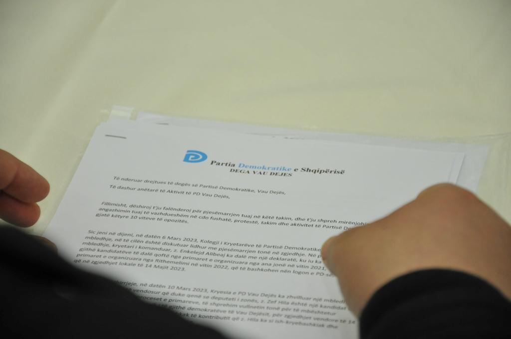 Në vijim të kësaj thirrjeje, në datën 10 Mars 2023, Kryesia e PD Vau Dejës ka zhvilluar një mbledhje, në përfundim të cilës është vendosur që duke qenë se deputeti i zonës, z. Zef Hila është një kandidat që ka pasur mbështetje në të dy proceset e primareve, të shprehim vullnetin tonë për të mbështetur kandidaturën e tij, si kandidat unik i të gjithë demokratëve të Vau Dejësit, për zgjedhjet vendore të 14 Majit. Bindja jonë e plotë ka qenë se për shkak të kontributit që z. Hila ka si ish-kryebashkiak dhe deputet i zonës, ai do të jetë kandidaturë fituese.