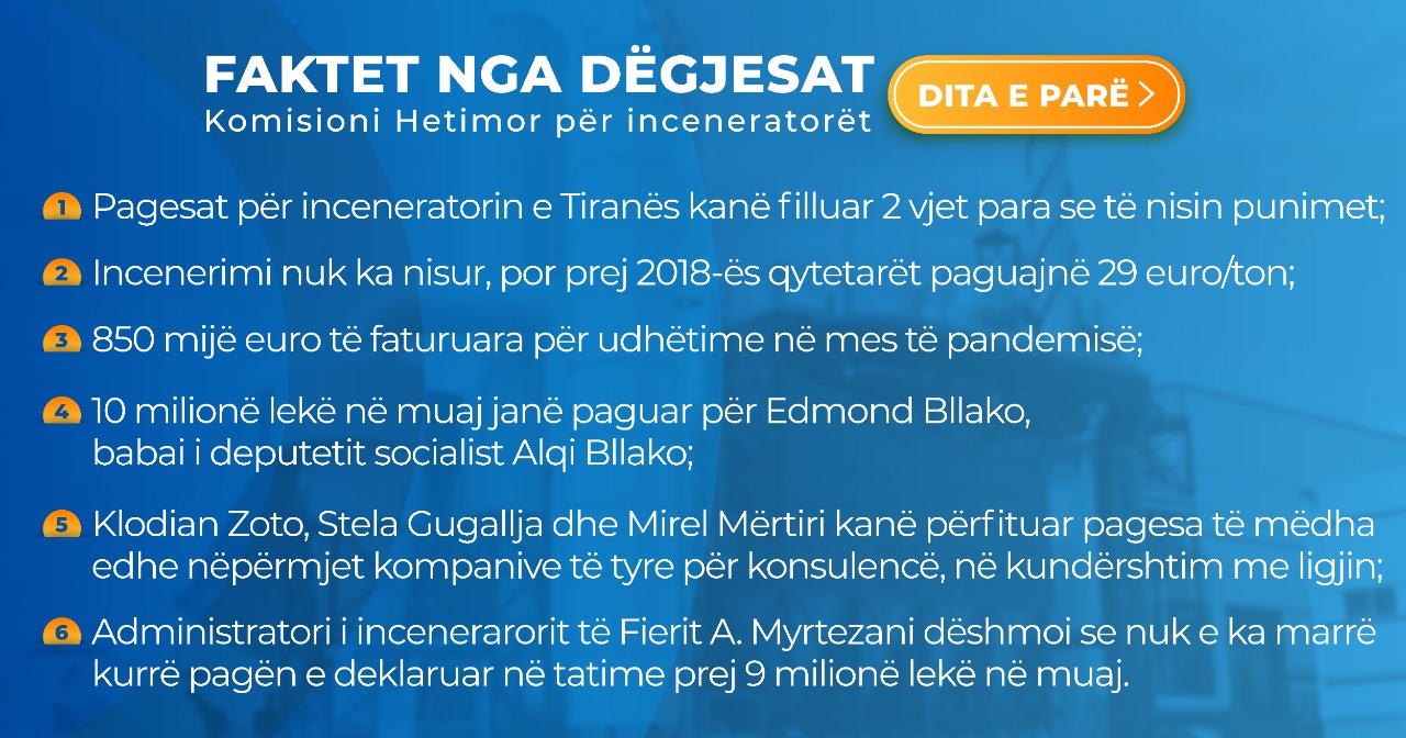 Partia Demokratike ka publikuar të dhëna që ajo i quan fakte të cilat kanë dalë nga dëgjesa e parë për inceneratorët.