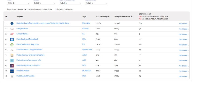 Ka përfunduar procesi i rinumërimit për 1207 kutitë e votimit për qarkun e Tiranës. Nga rinumërimi nuk ka lëvizur asnjë mandat i partive apo ndonjë renditje e kandidatëve brenda partive politike.