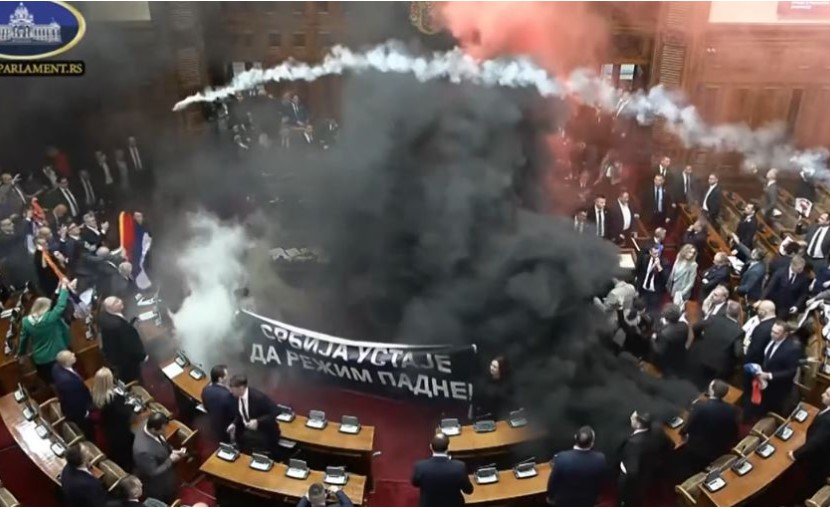 Një incident ndodhi të martën në Kuvendin e Serbisë, kur deputetët e opozitës u ngritën nga ulëset dhe aktivizuan mjete piroteknike në sallë.