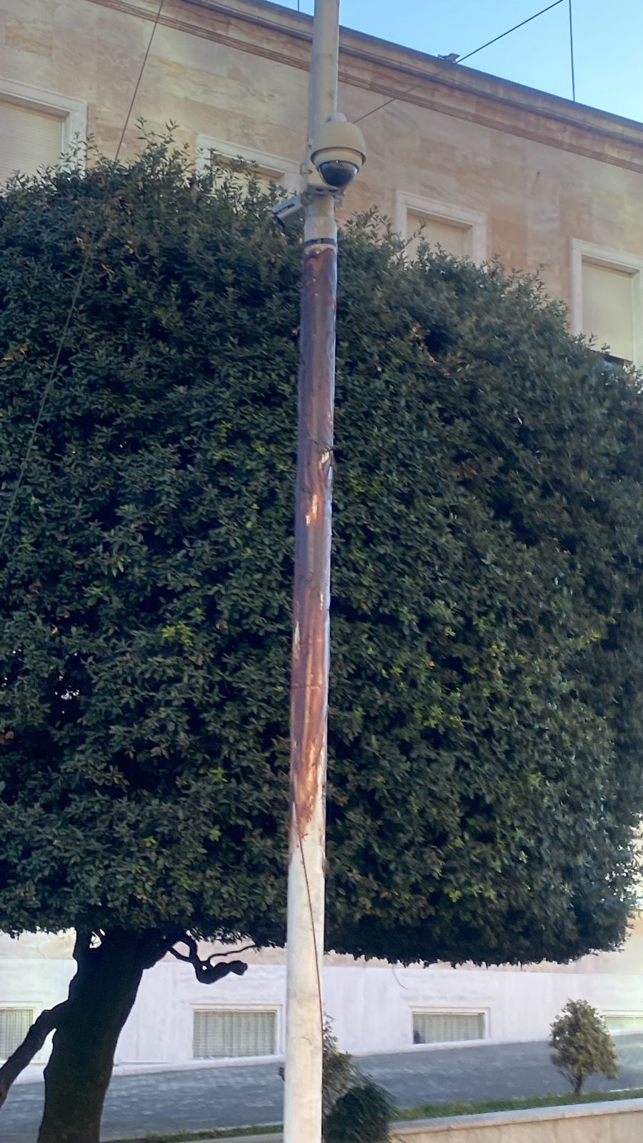 Gjithashtu mësohet se shtyllat janë lyer me graso me qëllim që të pengojnë ngjitjen e protestuesve për dëmtimin e këtyre kamerave.