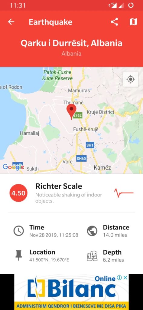 Lëkundjet e tërmetit vijojnë edhe gjatë ditës së sotme. Rreth orës 11:25 janë shënuar lëkundje të forta toke, kryesisht në zonën e Fushë Krujës.
