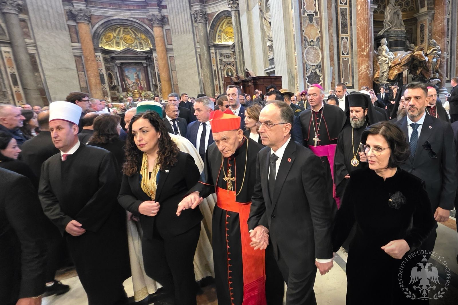 “Në një ceremoni ku morën pjesë liderë nga e gjithë bota – Afrika, Azia, Europa, Amerika Latine, Shtetet e Bashkuara, bota arabe dhe Lindja e Mesme – u dëshmua nderimi i madh për këtë figurë të madhe fetare dhe publike. Papa Françesku edhe një herë na dha një dëshmi të madhështisë së tij: një lumë njerëzish, nga Sheshi ‘Shën Pjetri’ deri te ‘Santa Maria Maggiore’, erdhi për t’i bërë homazh”, tha Presidenti Begaj.