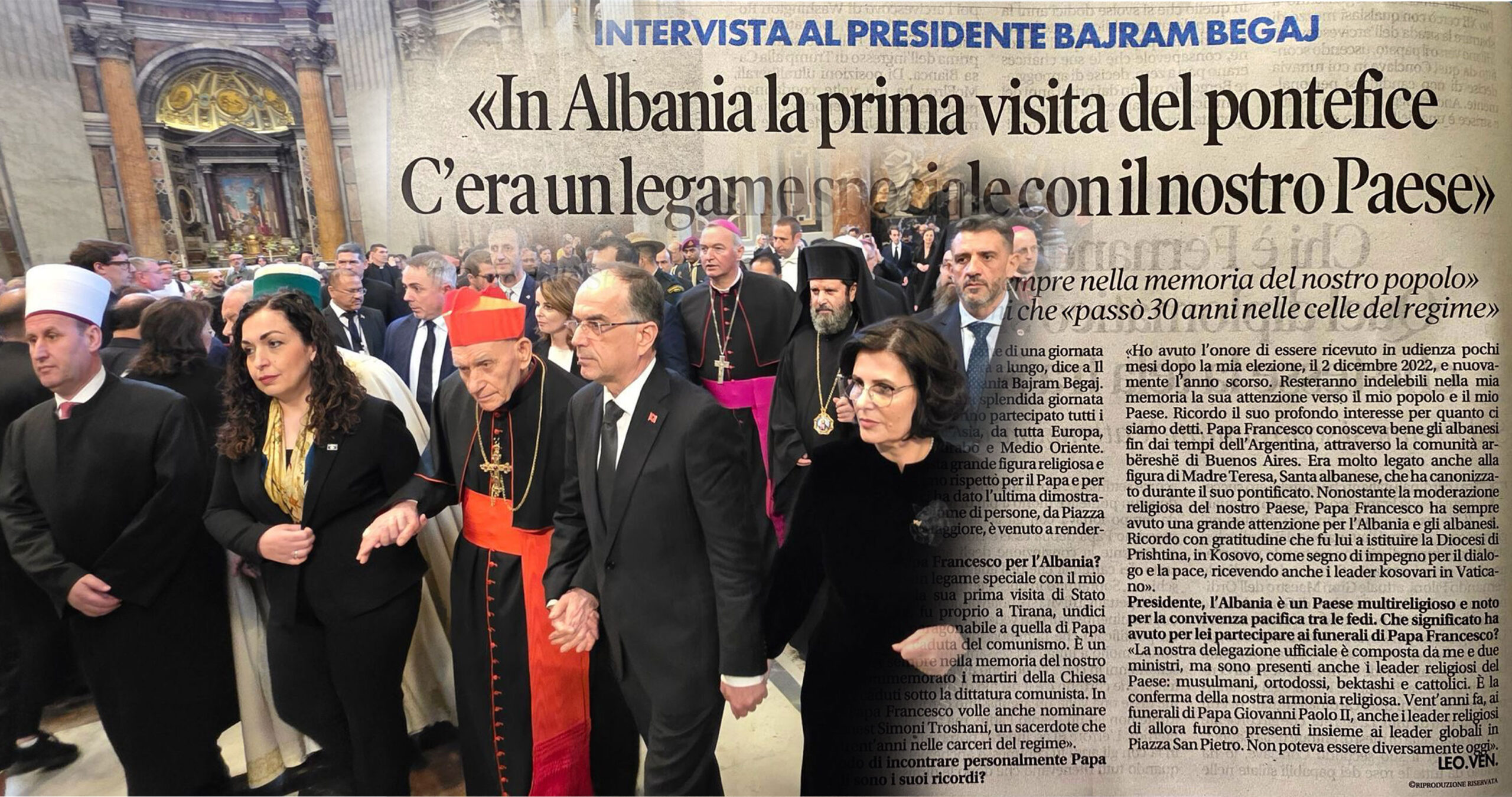 Presidenti i Republikës, Bajram Begaj, në një intervistë për gazetën italiane “Il Tempo”, ka ndarë përshtypjet e tij pas pjesëmarrjes në ceremoninë e varrimit të Papa Françeskut, duke e cilësuar atë si një përvojë unike dhe një shenjë të jashtëzakonshme respekti për figurën e Atit të Shenjtë.