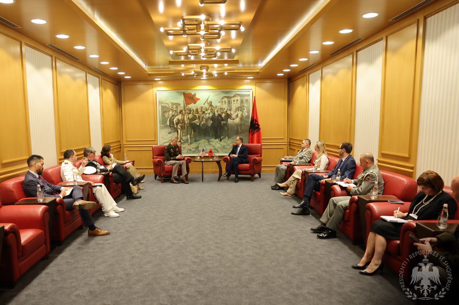 Gjatë takimit, Presidenti vlerësoi bashkëpunimin me Shtetet e Bashkuara në fushën e mbrojtjes dhe sigurisë, të cilët prej dekadash kanë ndihmuar në modernizimin e Forcave të Armatosura të Republikës së Shqipërisë.
