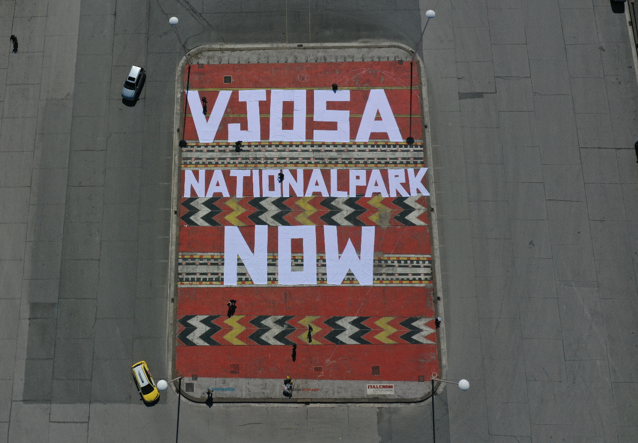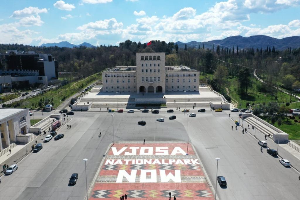 Aktivistë të Shoqërisë Civile dhe ambientalistë, protestuan këtë të mërkurë pranë sheshit “Nënë Tereza” në Tiranë për të mbrojtur lumin Vjosa si dhe të shpallet Park Kombëtar. Në qendër të sheshit u shkrua në gjuhën angleze “Vjosa park kombëtar tani”.
