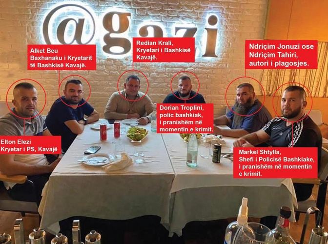 Këta Policë dhe drejtues të Policisë Bashkiake të Kavajës, janë nën shoqërinë e Kryetarit të Bashkisë dhe Kryetarit të Partisë Socialiste Kavajë, sëbashku me autorin e ngjarjes. Disa prej tyre të pranishëm edhe gjatë plagosjes me armë.