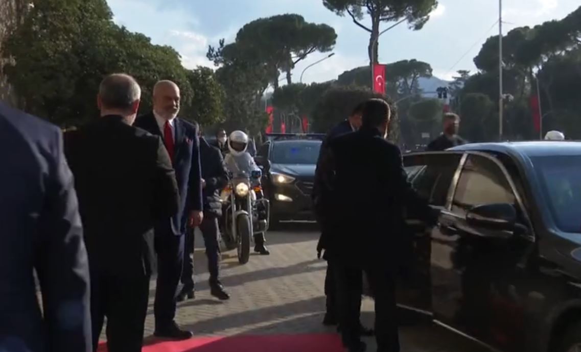 Presidenti i Republikës së Turqisë, Recep Tayip Erdoğan ka mbërritur rreth orës 14:20 në Kryeministri, ku ka nisur një takim me kreun e qeverisë shqiptare Edi Rama.