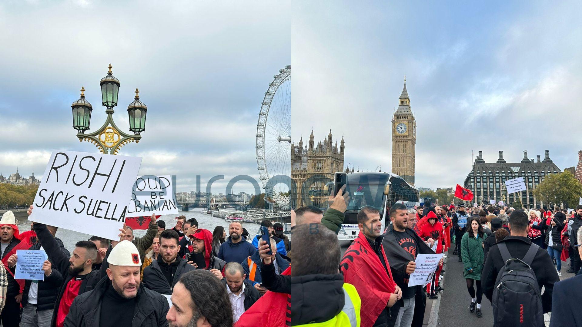 Emigrantët shqiptarë në Mbretërinë e Bashkuar kanë “pushtuar” rrugët e Anglisë me thirrje që kërkojnë largimin e Sekretares së Brendshme Suella Braverman.