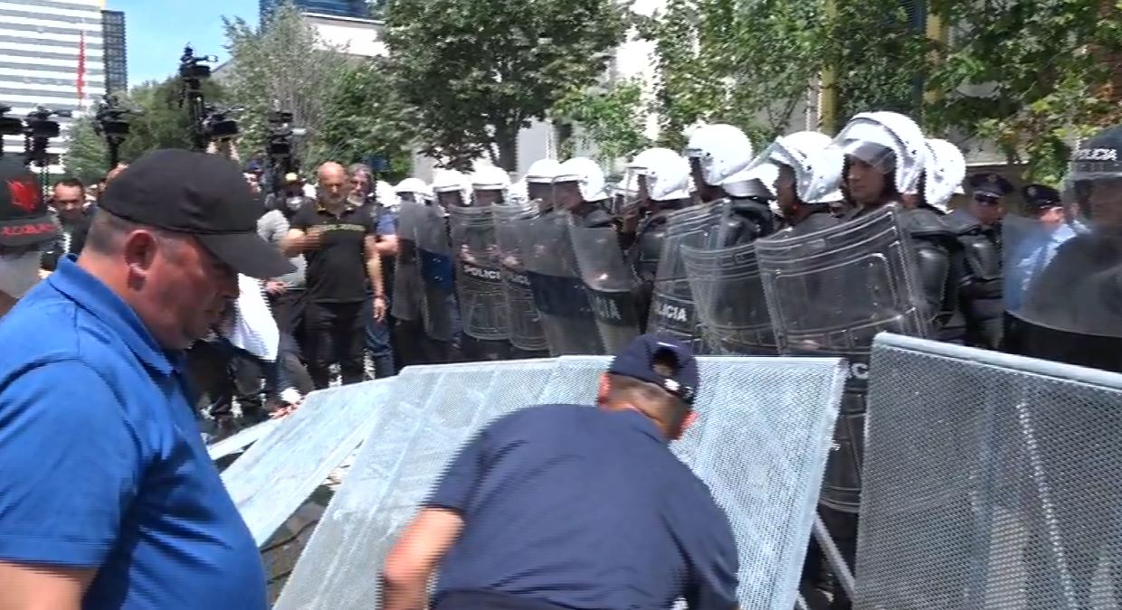 Protestuesit heqin një pjesë të barrierave metalike! Policët me skafandra bëhen “gardh” para godinës