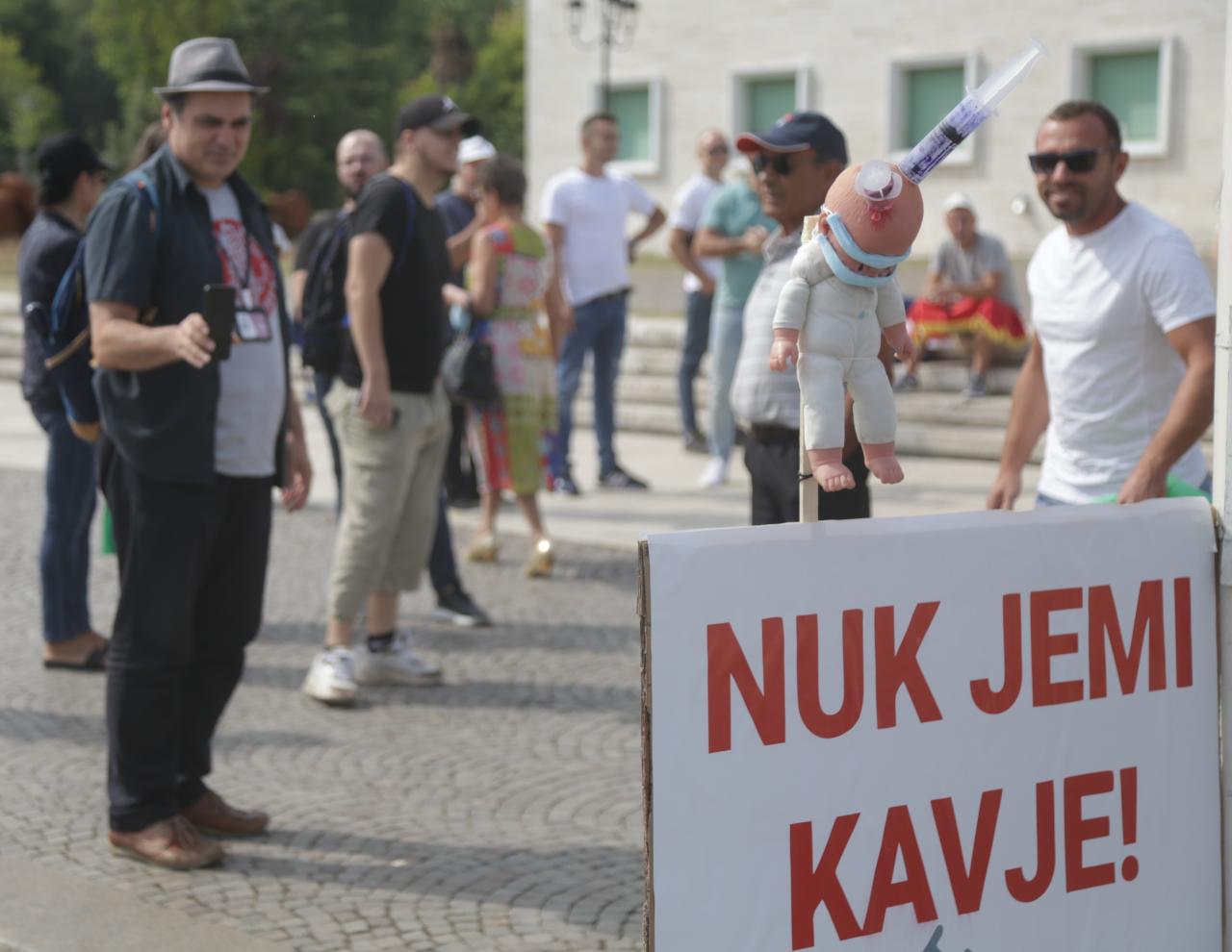 “Ata pretendojnë se edhe ata vetë nuk e dinë se çfarë pasojash kanë. Unë nuk e di nëse ata nuk e dinë. Përfundon me kartën e pacientit. A ka të drejtë dikush që të fusë në trupin tonë diçka që ne nuk duam. Poshtë diktatura! Që të nxjerrin ligjet për studentët pastaj për shkollat e mesme, pastaj për kopshtet”, shprehet njëri prej protestuesve.
