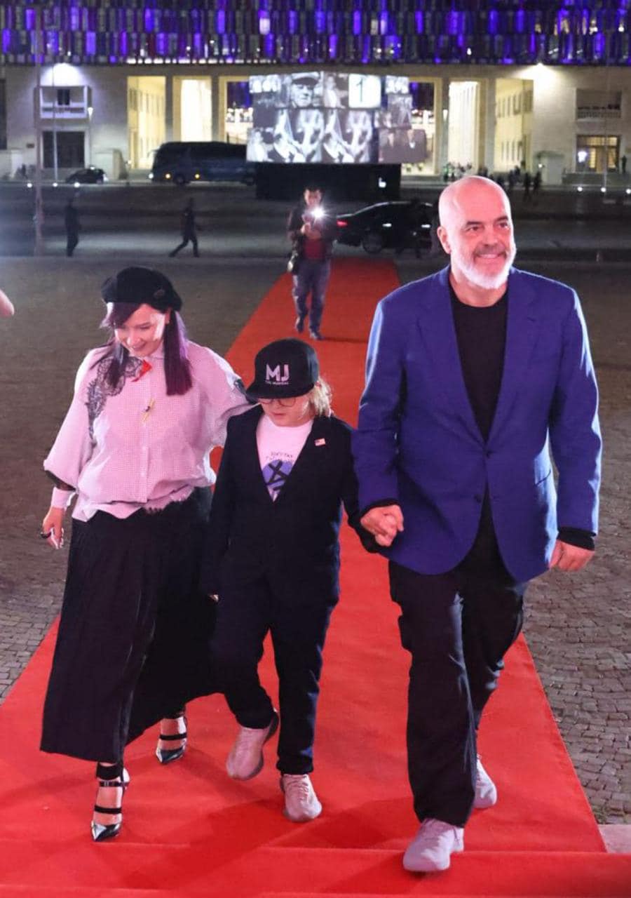 Kryeministri Rama sëbashku me bashkëshorten, Lindën dhe djalin, Zahon, ishin te Teatri i ri i Universitetit të Artëve.