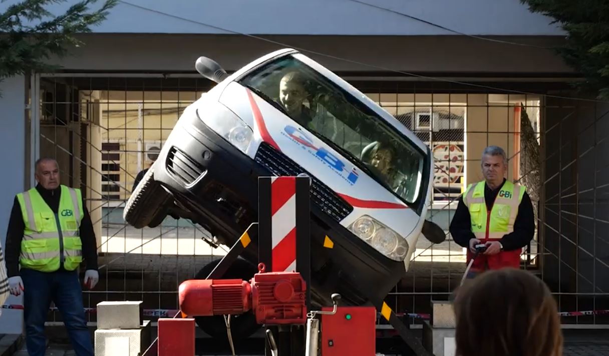 “Kjo është një makinë që simulon përmbysjen e një mjete dhe na bën të kuptojmë si pasagjerë sesa i rëndësishëm është rripi i sigurimit”.