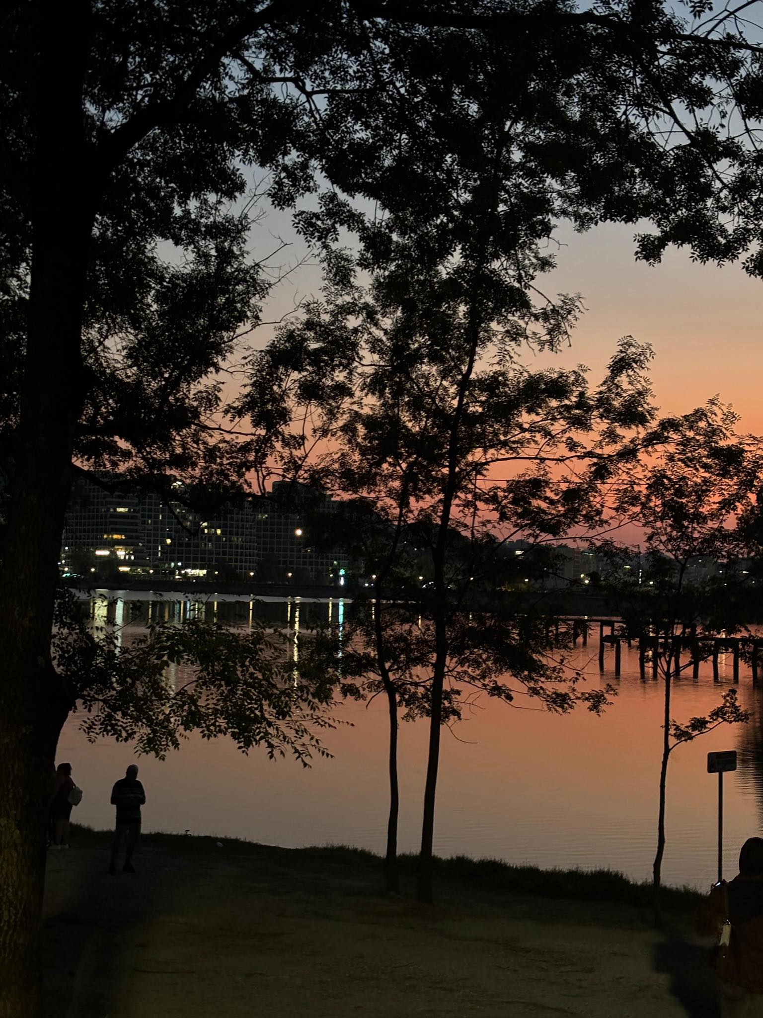 Rama poston foton, perëndimi i diellit në liqenin e Tiranës