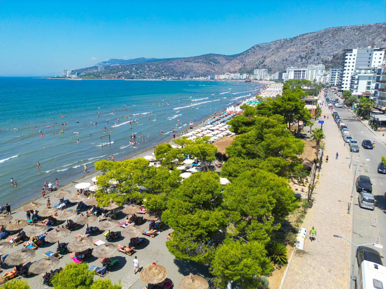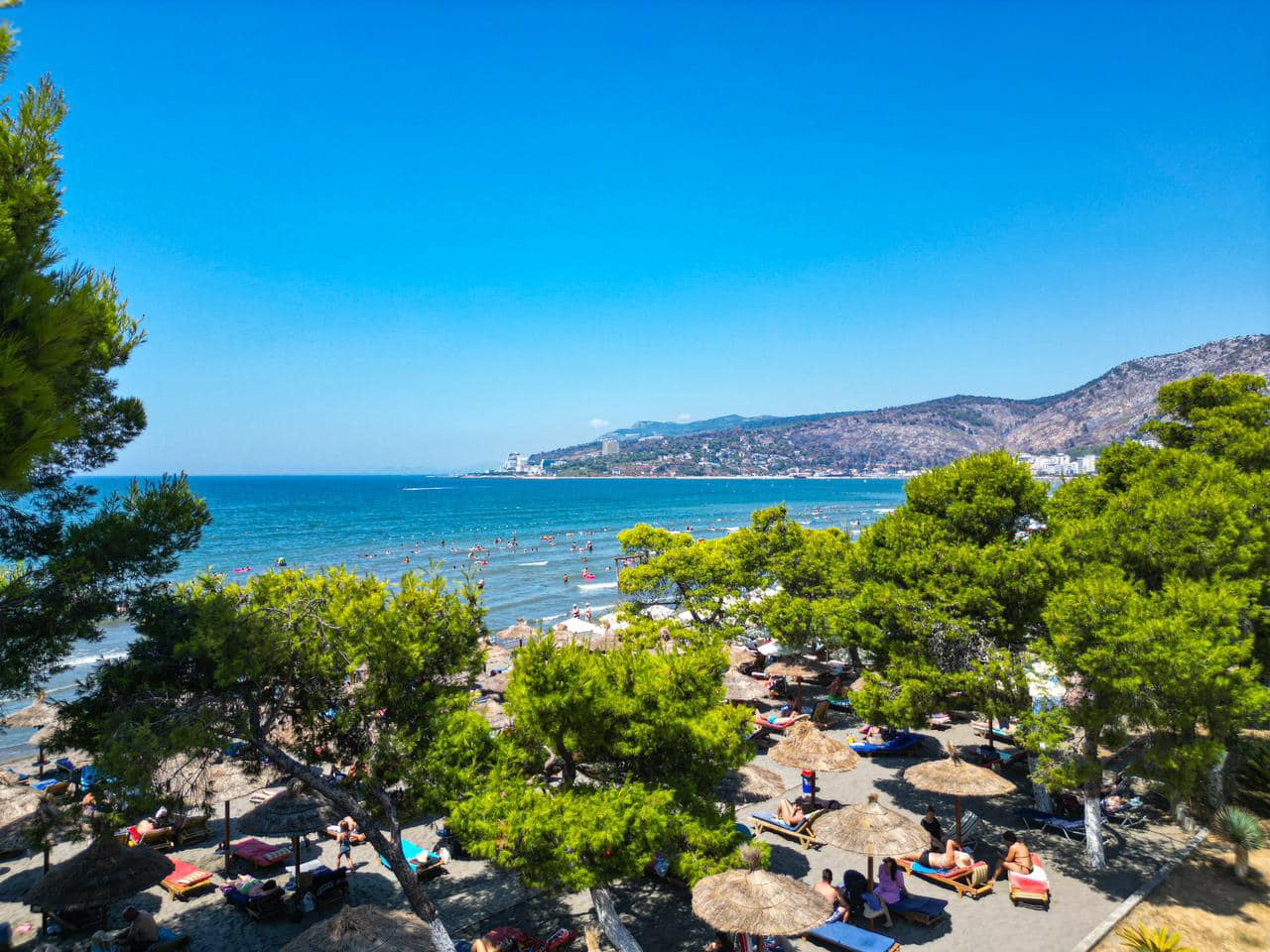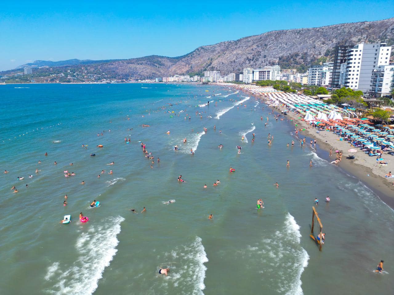 Rama poston fotot nga plazhi i Kunës në Shëngjin, shihet i tejmbushur me turistë dhe pushues